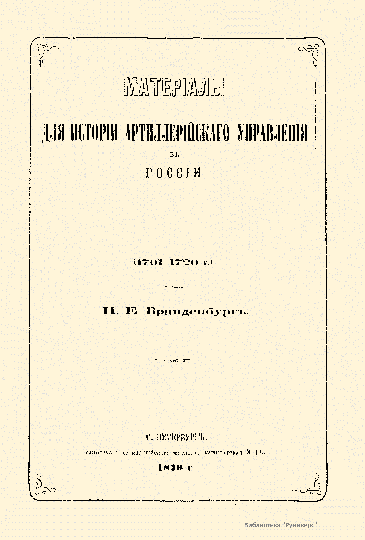 Материалы для истории артиллерийского управления в России (1701-1720 г.)