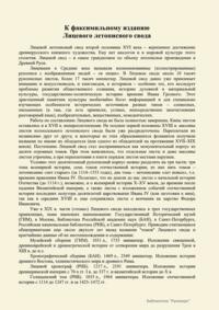 Лицевой летописный свод. XVI века — монументальный памятник древнерусского книжного искусства. На 10 тысячах листов с более чем 17 тысячами красочных миниатюр — «окон в историю» — представлена самая ранняя историческая и литературная энциклопедия. Лицевой свод дошел до наших дней в 10 томах, находящихся в разных древлехранилищах: БАН к РНБ в Санкт-Петербурге и ГИМ в Москве. Фирма «АКТЕОН» совместно с хранителями впервые осуществила научное факсимильное издание «Лицевой летописный свод XVI века». Предлагаемое издание с переводом — как дополнение в рамках научного аппарата вышеназванного факсимиле - представлено тремя разделами: библейская история, всемирная история, русская летописная история. В настоящем издании листы расположены в хронологическом порядке повествования На внешнем поле размещены транслитерация и перевод на современный русский язык. Русская летописная история 1114—1567 гг. — отражена на 6010 Лицевого летописного свода XVI века в следующих его томах: Г — Голицынский том (Отдел рукописей Российский национальной библиотеки, F.IV.225), Л — Лаптевский TOM (Отдел рукописей Российской национальной библиотеки, F.IV.233), O-I — Остермановский первый том (Отдел рукописей Библиотеки Академии наук, 31. 7. 30-1), O-II — Остермановский второй той (Отдел рукописей Библиотеки Академии наук, 31, 7. 30-2), Ш — Шумиловский том (Отдел рукописей Российской национальной библиотеки, F, IY. 232), С — Синодальный том (Отдел рукописей Государственного Исторического музея. Син. № 962), Ц— Царственная книга (Отдел рукописей Государственного Историческою музея. Син. № 149). В сносках отряжены разночтения с перепей ПСРЛ — Полным собранием русских летописей - фундаментальной для изучения истории древней и средневековой Руси книжной серией (её тексты, в основном, издавались наборно, в орфографии XIX века).