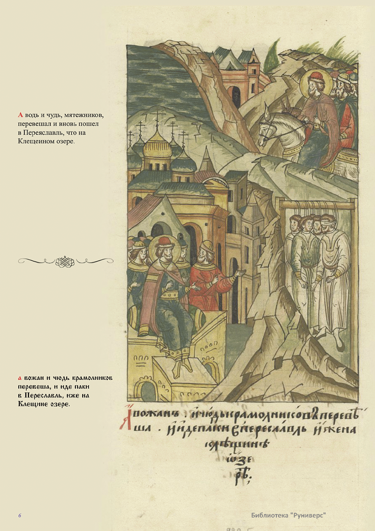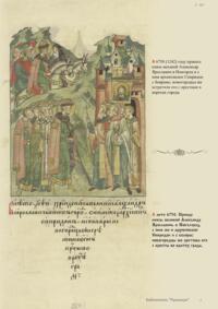 Лицевой летописный свод. XVI века — монументальный памятник древнерусского книжного искусства. На 10 тысячах листов с более чем 17 тысячами красочных миниатюр — «окон в историю» — представлена самая ранняя историческая и литературная энциклопедия. Лицевой свод дошел до наших дней в 10 томах, находящихся в разных древлехранилищах: БАН к РНБ в Санкт-Петербурге и ГИМ в Москве. Фирма «АКТЕОН» совместно с хранителями впервые осуществила научное факсимильное издание «Лицевой летописный свод XVI века». Предлагаемое издание с переводом — как дополнение в рамках научного аппарата вышеназванного факсимиле - представлено тремя разделами: библейская история, всемирная история, русская летописная история. В настоящем издании листы расположены в хронологическом порядке повествования На внешнем поле размещены транслитерация и перевод на современный русский язык. Русская летописная история 1114—1567 гг. — отражена на 6010 Лицевого летописного свода XVI века в следующих его томах: Г — Голицынский том (Отдел рукописей Российский национальной библиотеки, F.IV.225), Л — Лаптевский TOM (Отдел рукописей Российской национальной библиотеки, F.IV.233), O-I — Остермановский первый том (Отдел рукописей Библиотеки Академии наук, 31. 7. 30-1), O-II — Остермановский второй той (Отдел рукописей Библиотеки Академии наук, 31, 7. 30-2), Ш — Шумиловский том (Отдел рукописей Российской национальной библиотеки, F, IY. 232), С — Синодальный том (Отдел рукописей Государственного Исторического музея. Син. № 962), Ц— Царственная книга (Отдел рукописей Государственного Историческою музея. Син. № 149). В сносках отряжены разночтения с перепей ПСРЛ — Полным собранием русских летописей - фундаментальной для изучения истории древней и средневековой Руси книжной серией (её тексты, в основном, издавались наборно, в орфографии XIX века).