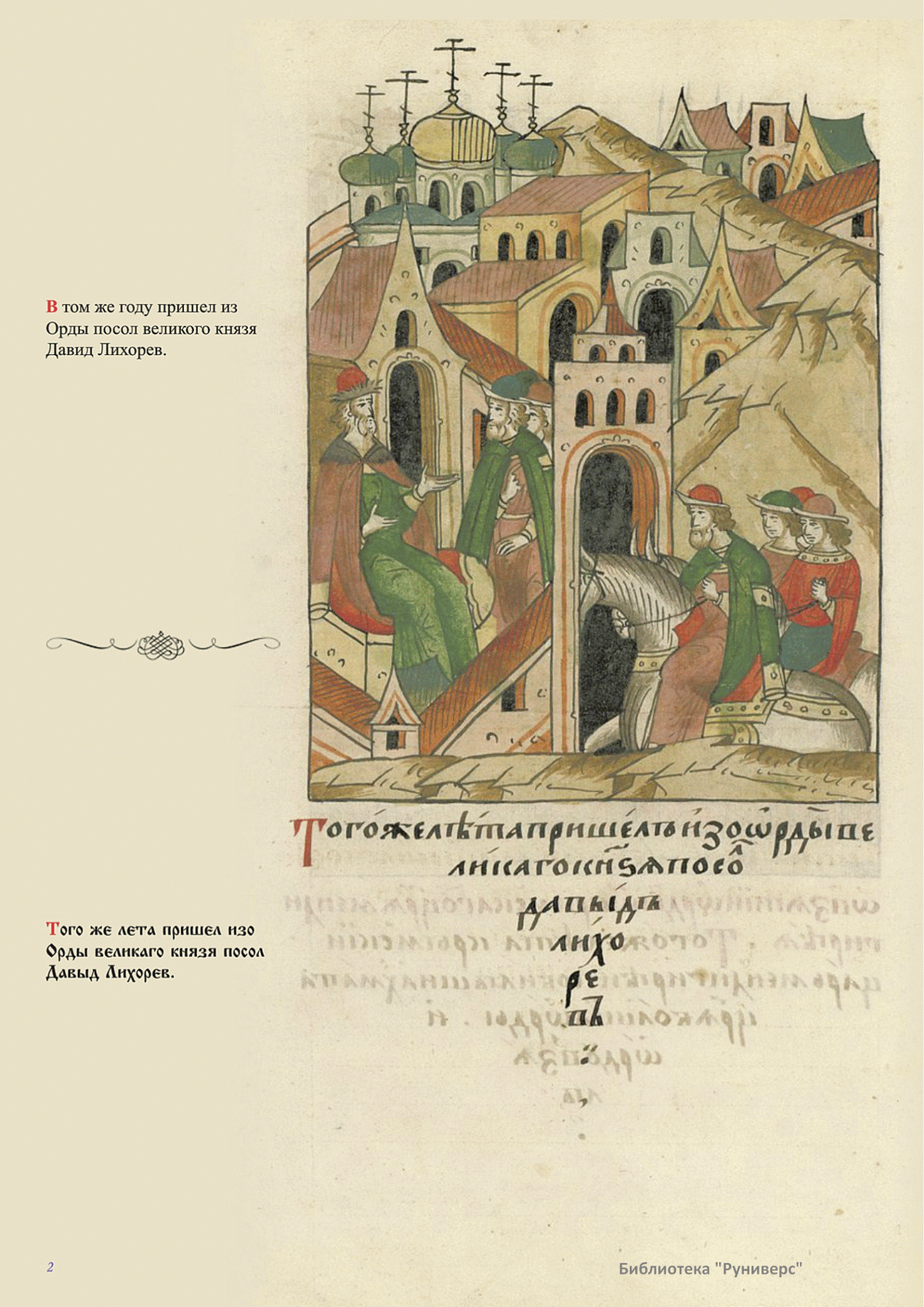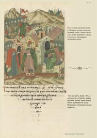 Лицевой летописный свод. XVI века — монументальный памятник древнерусского книжного искусства. На 10 тысячах листов с более чем 17 тысячами красочных миниатюр — «окон в историю» — представлена самая ранняя историческая и литературная энциклопедия. Лицевой свод дошел до наших дней в 10 томах, находящихся в разных древлехранилищах: БАН к РНБ в Санкт-Петербурге и ГИМ в Москве. Фирма «АКТЕОН» совместно с хранителями впервые осуществила научное факсимильное издание «Лицевой летописный свод XVI века». Предлагаемое издание с переводом — как дополнение в рамках научного аппарата вышеназванного факсимиле - представлено тремя разделами: библейская история, всемирная история, русская летописная история. В настоящем издании листы расположены в хронологическом порядке повествования На внешнем поле размещены транслитерация и перевод на современный русский язык. Русская летописная история 1114—1567 гг. — отражена на 6010 Лицевого летописного свода XVI века в следующих его томах: Г — Голицынский том (Отдел рукописей Российский национальной библиотеки, F.IV.225), Л — Лаптевский TOM (Отдел рукописей Российской национальной библиотеки, F.IV.233), O-I — Остермановский первый том (Отдел рукописей Библиотеки Академии наук, 31. 7. 30-1), O-II — Остермановский второй той (Отдел рукописей Библиотеки Академии наук, 31, 7. 30-2), Ш — Шумиловский том (Отдел рукописей Российской национальной библиотеки, F, IY. 232), С — Синодальный том (Отдел рукописей Государственного Исторического музея. Син. № 962), Ц— Царственная книга (Отдел рукописей Государственного Историческою музея. Син. № 149). В сносках отряжены разночтения с перепей ПСРЛ — Полным собранием русских летописей - фундаментальной для изучения истории древней и средневековой Руси книжной серией (её тексты, в основном, издавались наборно, в орфографии XIX века).