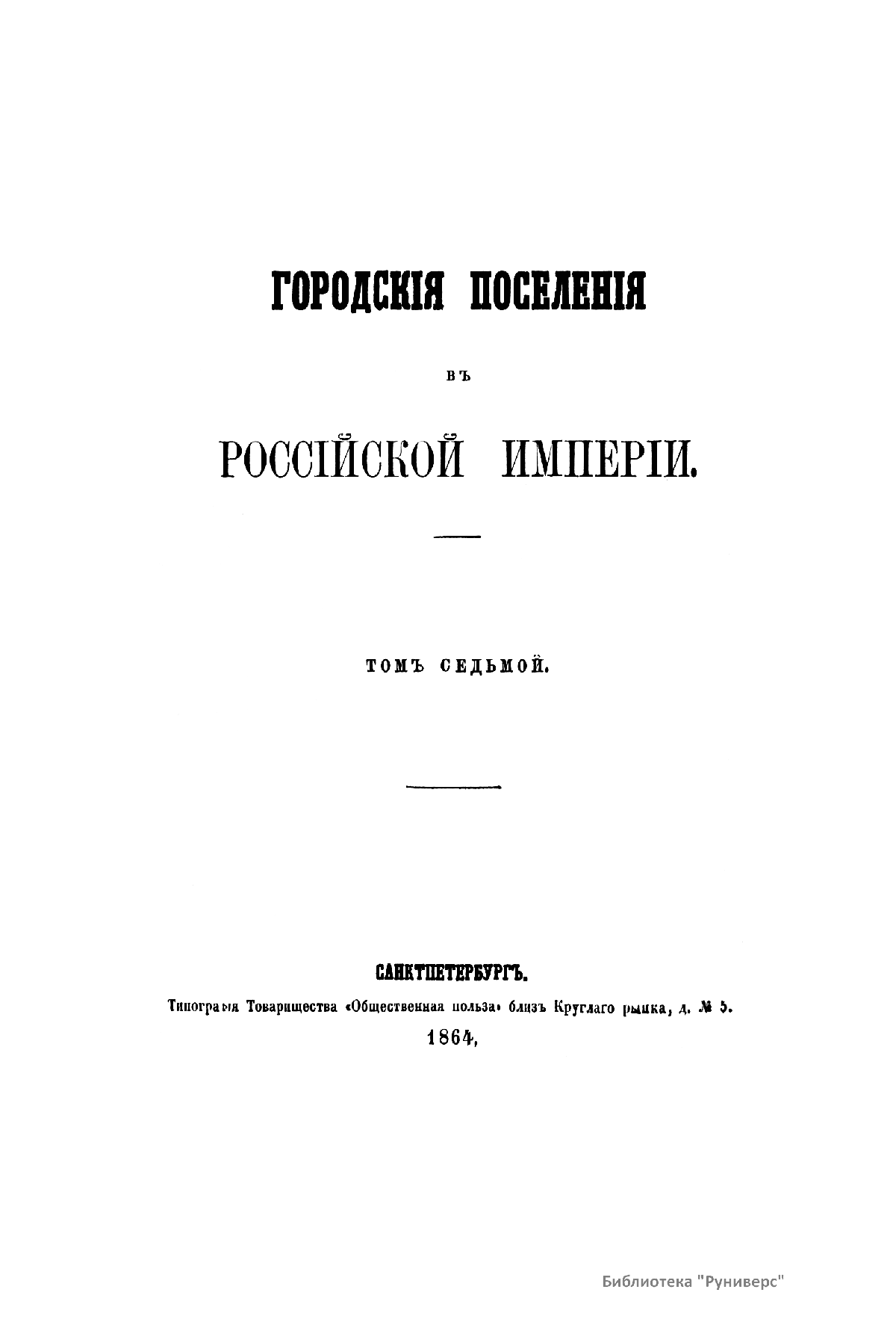 Городскiя поселенiя въ Россiйской имперiи. Томъ седьмой