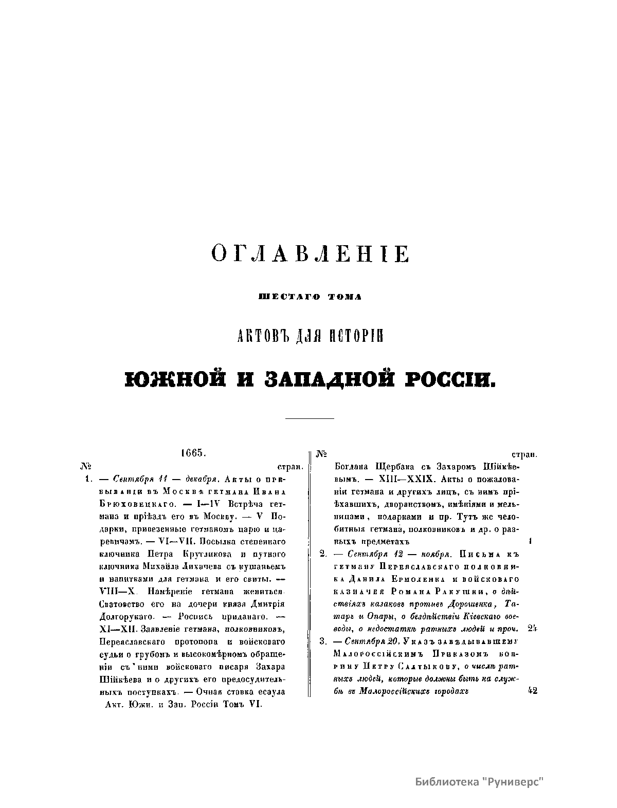 Акты, относящiеся къ исторiи южной и западной Россiи. Томъ шестой. 1665-1668