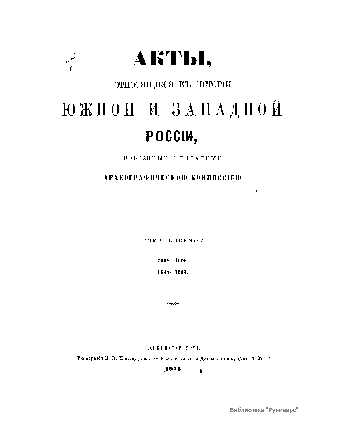 Акты, относящиеся к истории южной и западной России. Том восьмой. 1668-1669. 1648-1657