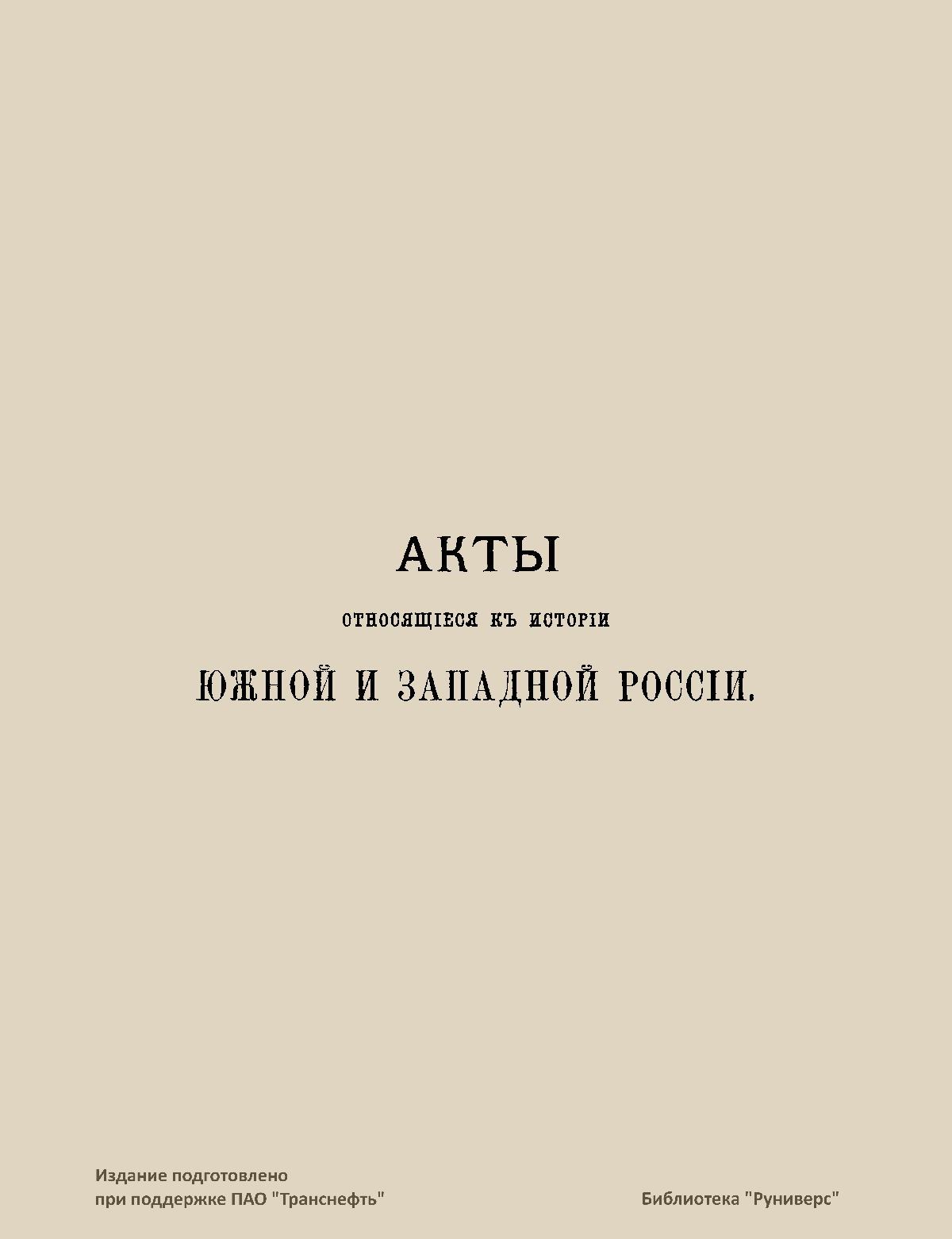 Акты, относящиеся к истории южной и западной России. Том десятый (дополнение к III тому)