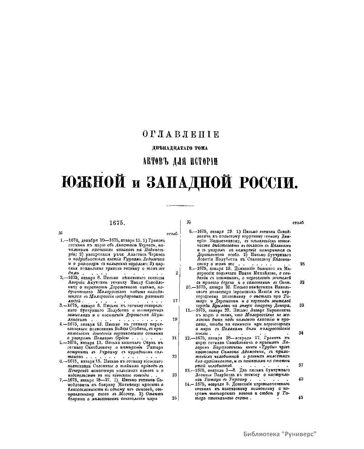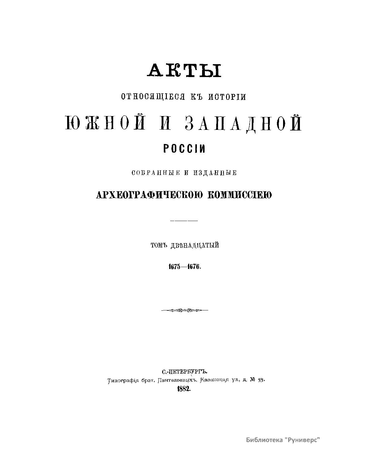 Акты, относящiеся къ исторiи южной и западной Россiи. Томъ двѣнадцатый. 1675-1676