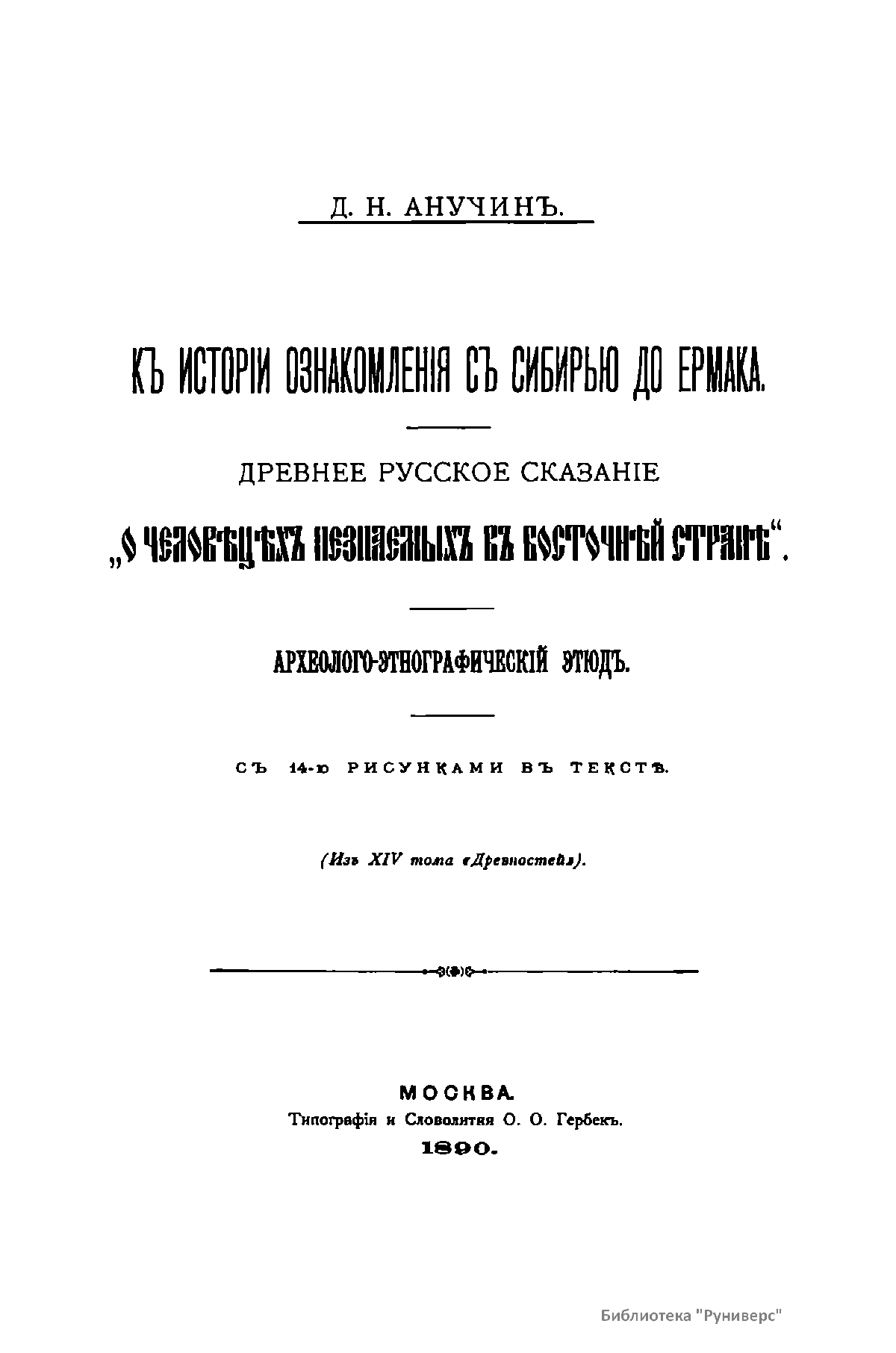 Къ исторiи ознакомленiя съ Сибирью до Ермака
