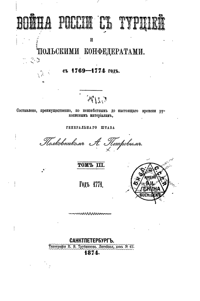 Война России с Турцией и Польскими конфедератами с 1769-1774 год. Том III