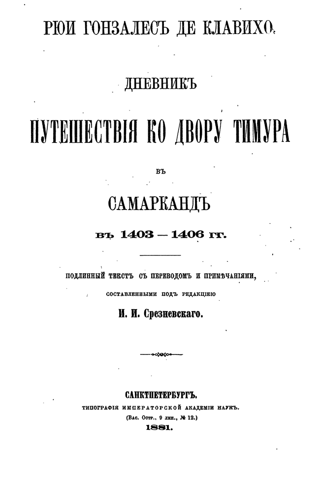 Дневник путешествия ко двору Тимура в Самарканд в 1403-1406 гг