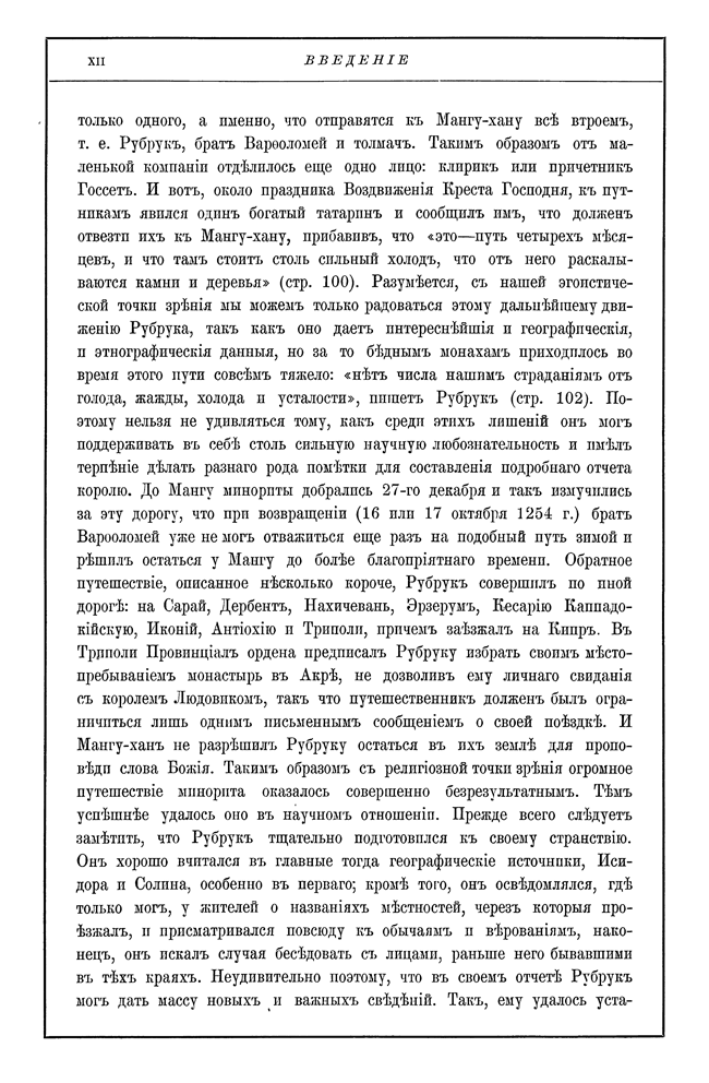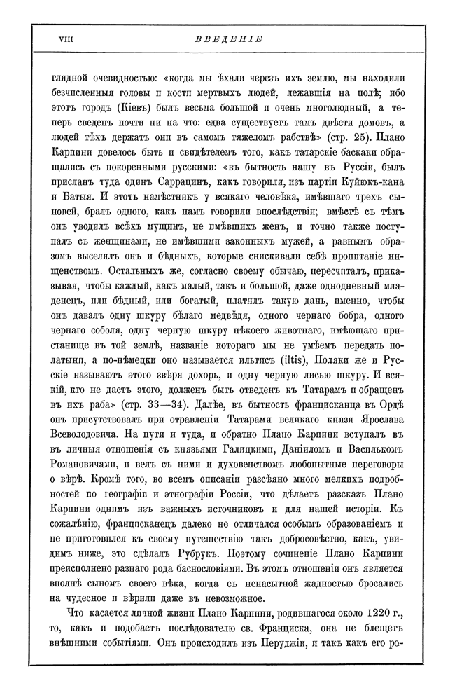 Выпуск «Библиотеки иностранных писателей о России» Издательства А. С. Суворина, посвященный покорившим в XIII веке Русь монголам. Издаваемые авторы могут служить наилучшим источником для исследования этого некогда могущественного народа, так как они с наибольшими подробностями изображают государственное устройство и быт татар, взаимно дополняя друг друга. Попутно они представляют множество ценных наблюдений для положения Руси в период монгольского завоевания и для характеристики внешнего вида ее жителей, их занятий, верований и суеверия.