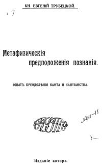 Метафизические предположения познания. Опыт преодоления Канта и кантианства