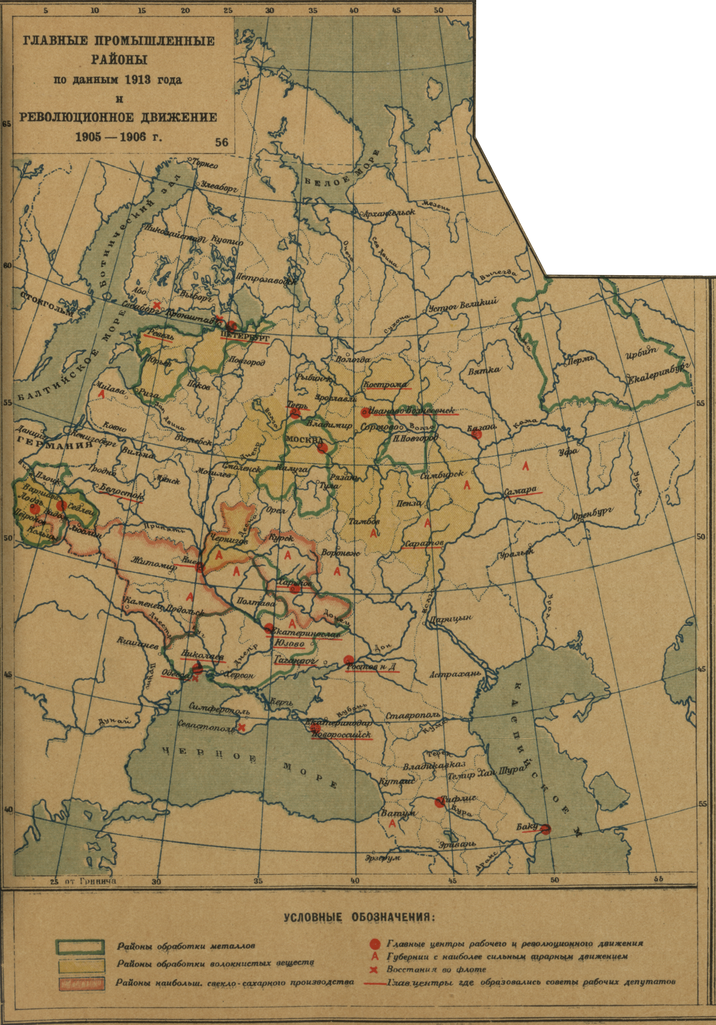 Главные промышленные районы по данным 1913 года и революционное движение 1905-1906 года