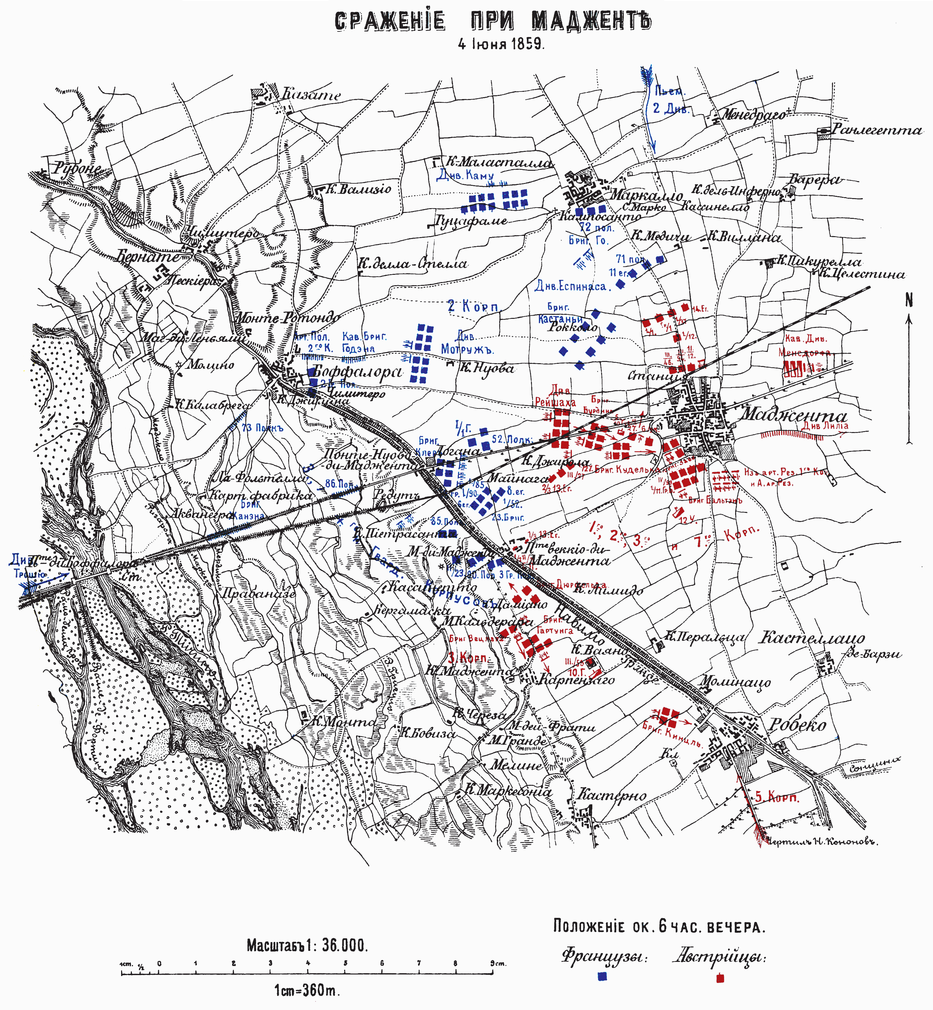 Сражение при Мандженте 4 июня 1859. Положение около 6 часов вечера