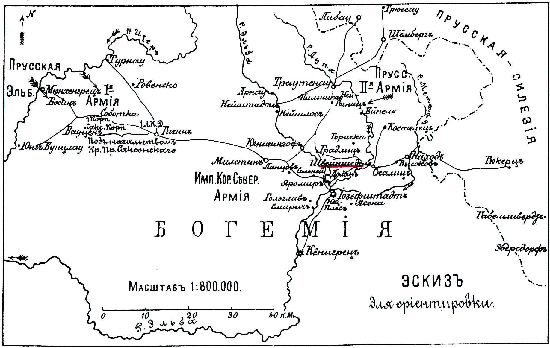 Бой при Швейншеделе 29 июня 1866 года. Эскиз для ориентировки