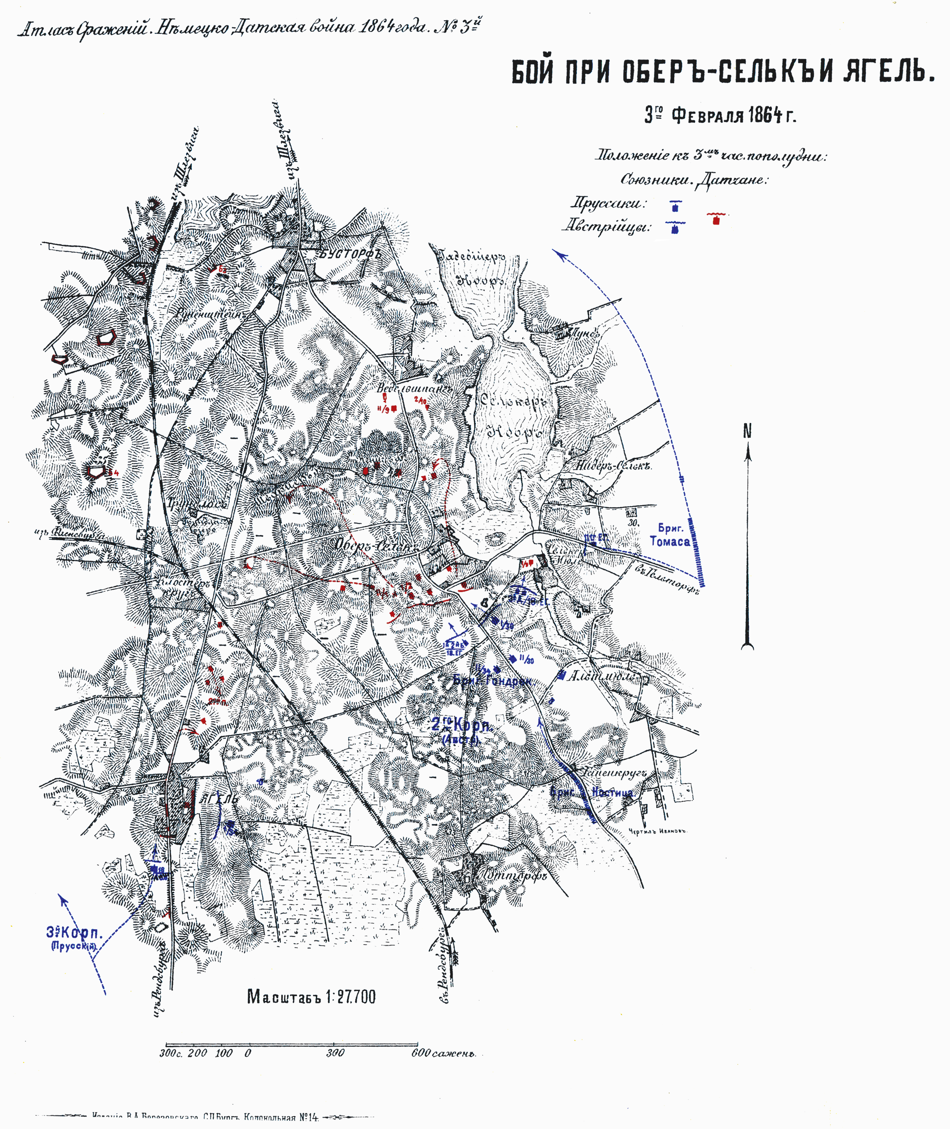 Бой при Обер-Сельк и Ягель. 3-го февраля 1864 года. Положение к 3-м часам пополудни
