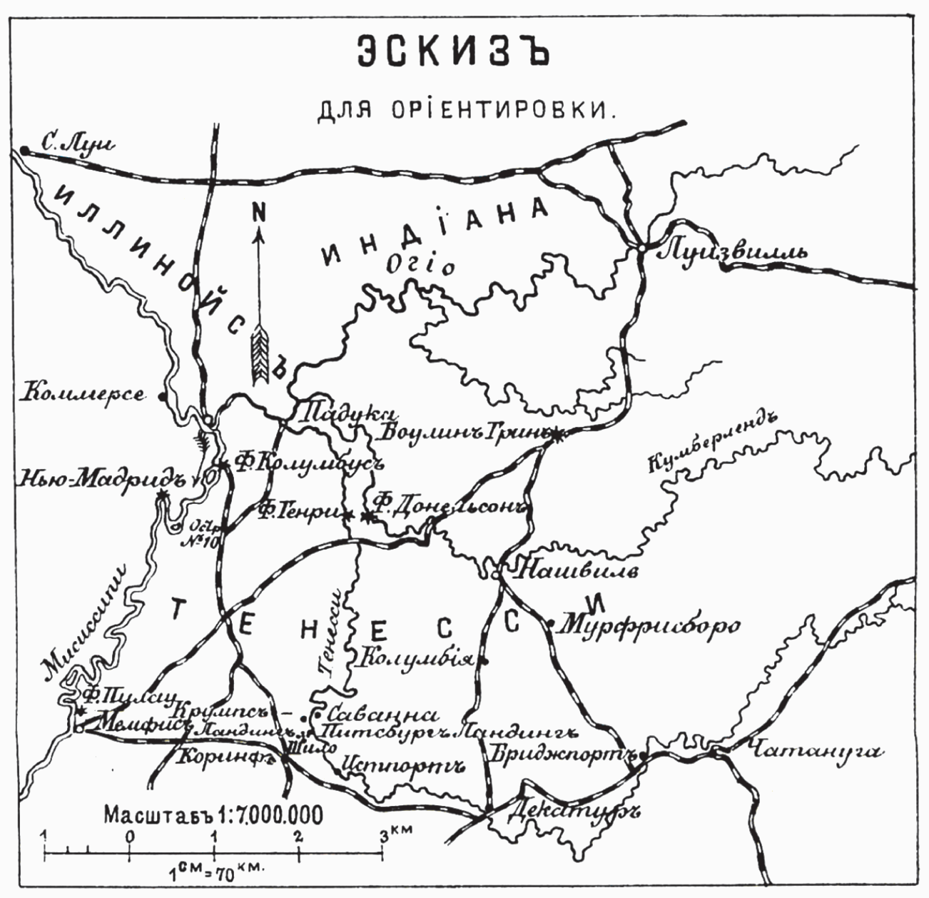 Сражение при Шило, 6 и 7 апреля 1862 года. Эскиз для ориентировки