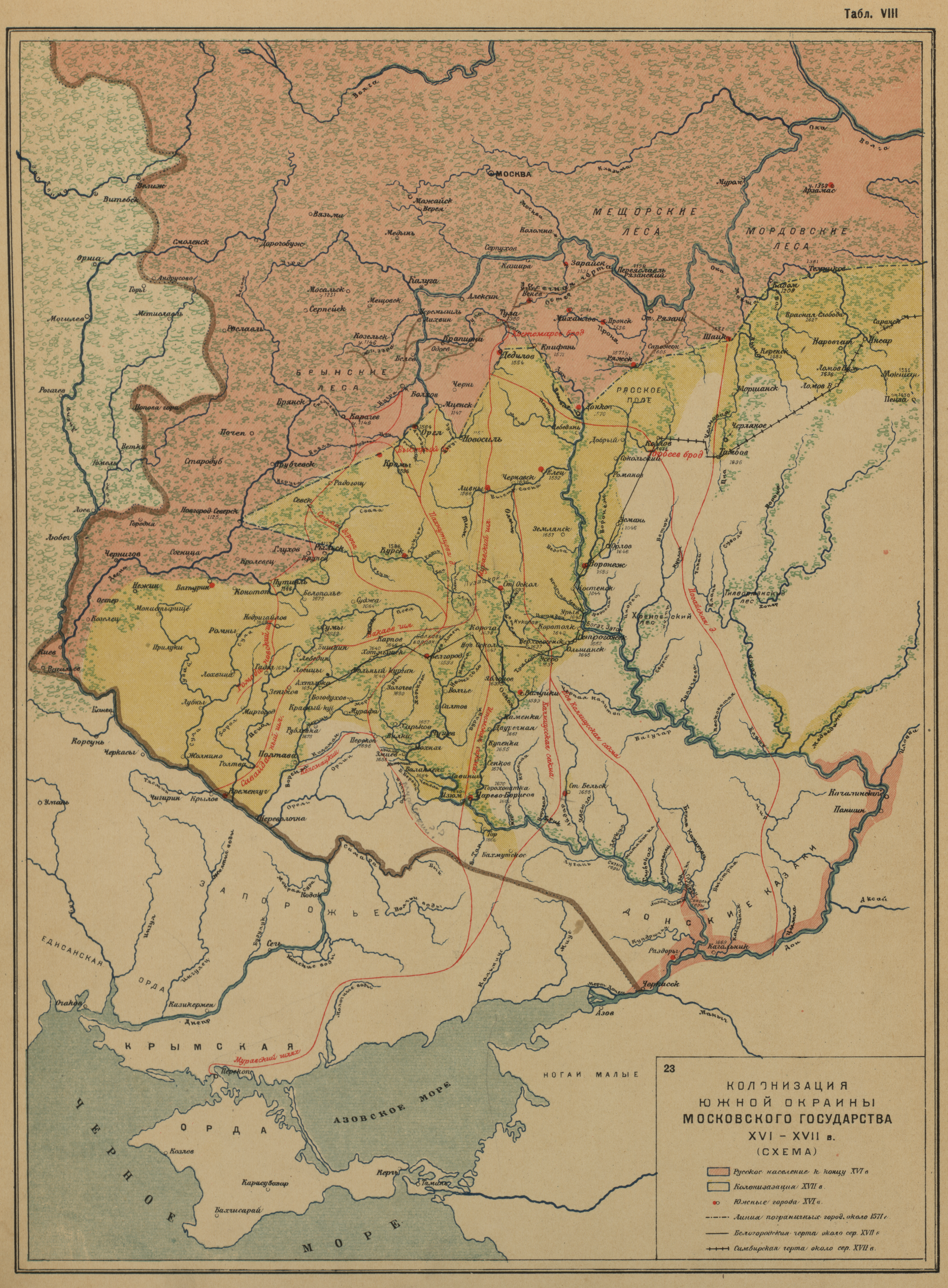 Колонизация южной окраины Московского государства XVI-XVII век (схема)