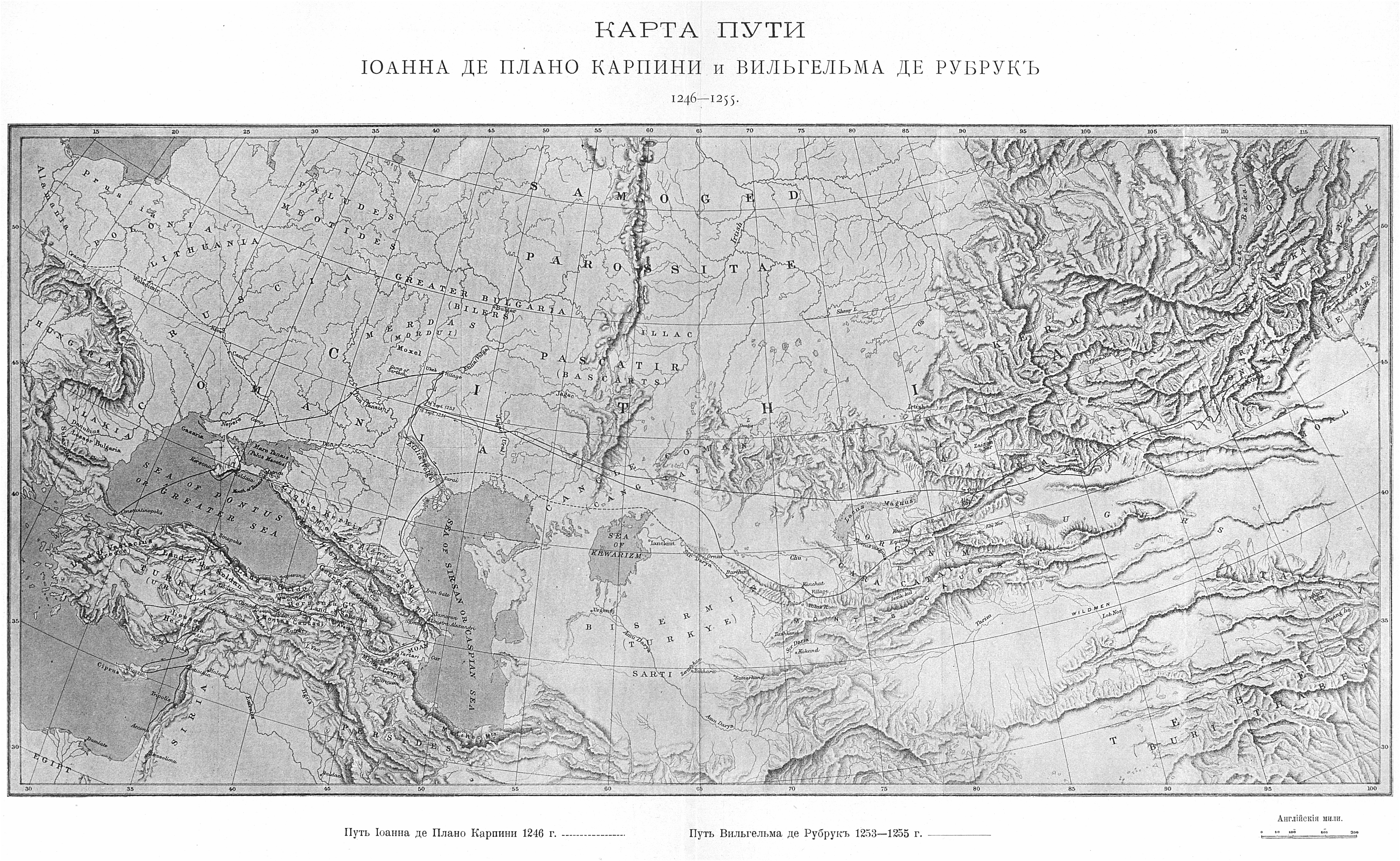 Карта пути Иоанна де Плано Карпини и Вильгельма де Рубрука 1246-1255