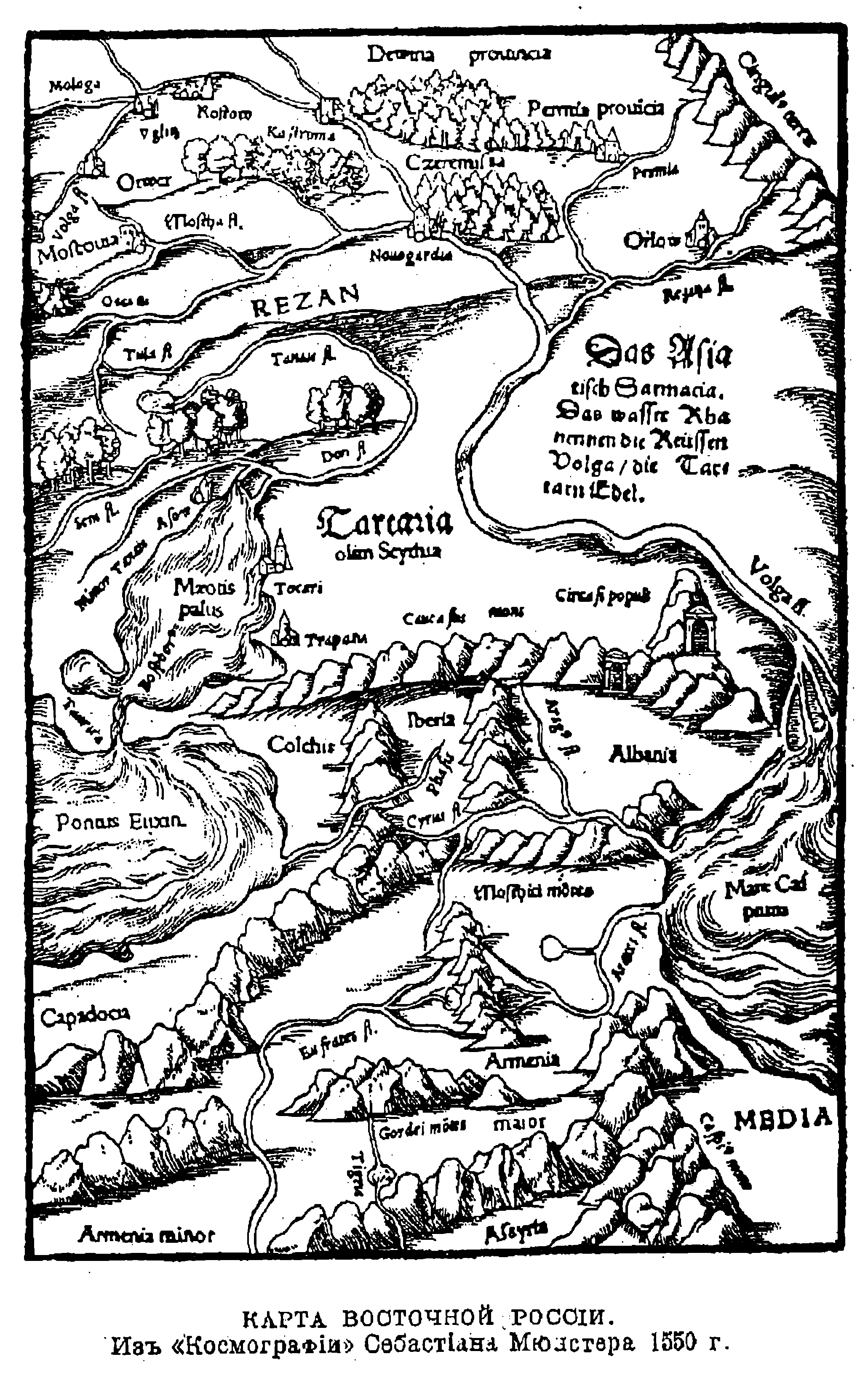Восточная Россия. Из "Космографии" Себастиана Мюнстера, 1550 год