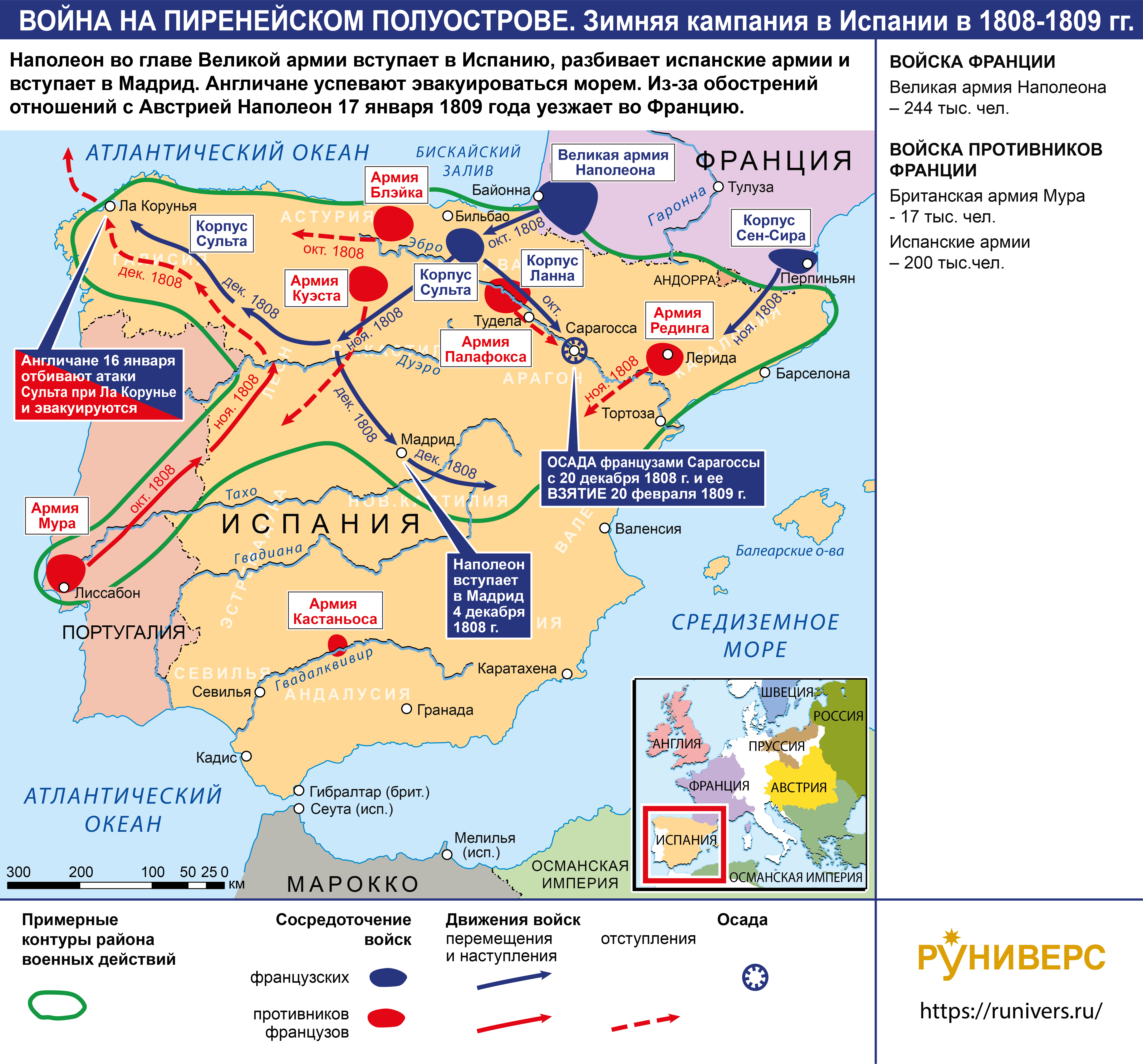 Наполеоновские войны. Война на Пиренейском полуострове. Зимняя кампания в Испании в 1808-1809 гг.