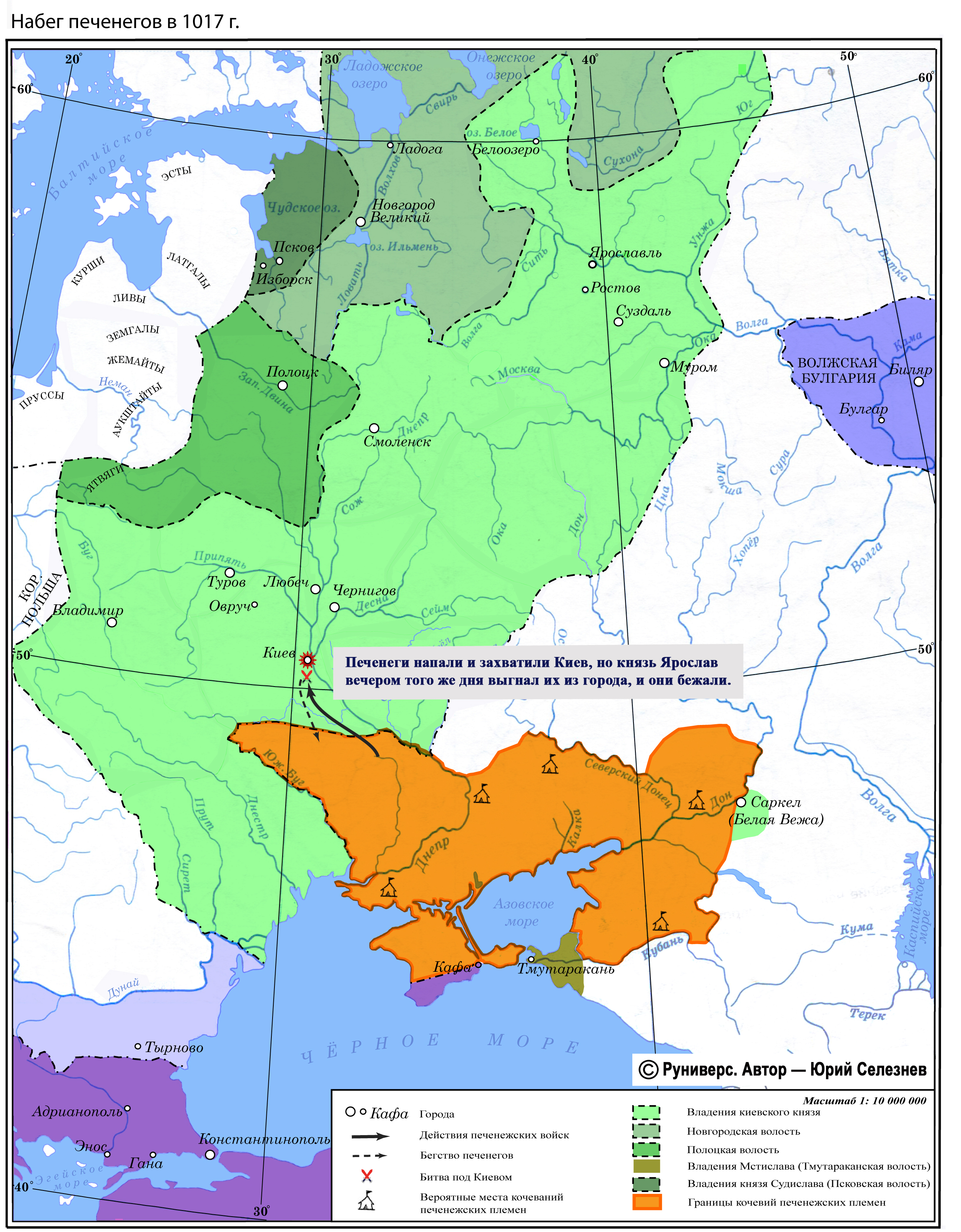 Печенеги ворвались в Киев, но князь Ярослав вечером того же дня выгнал их из города, и они бежали.