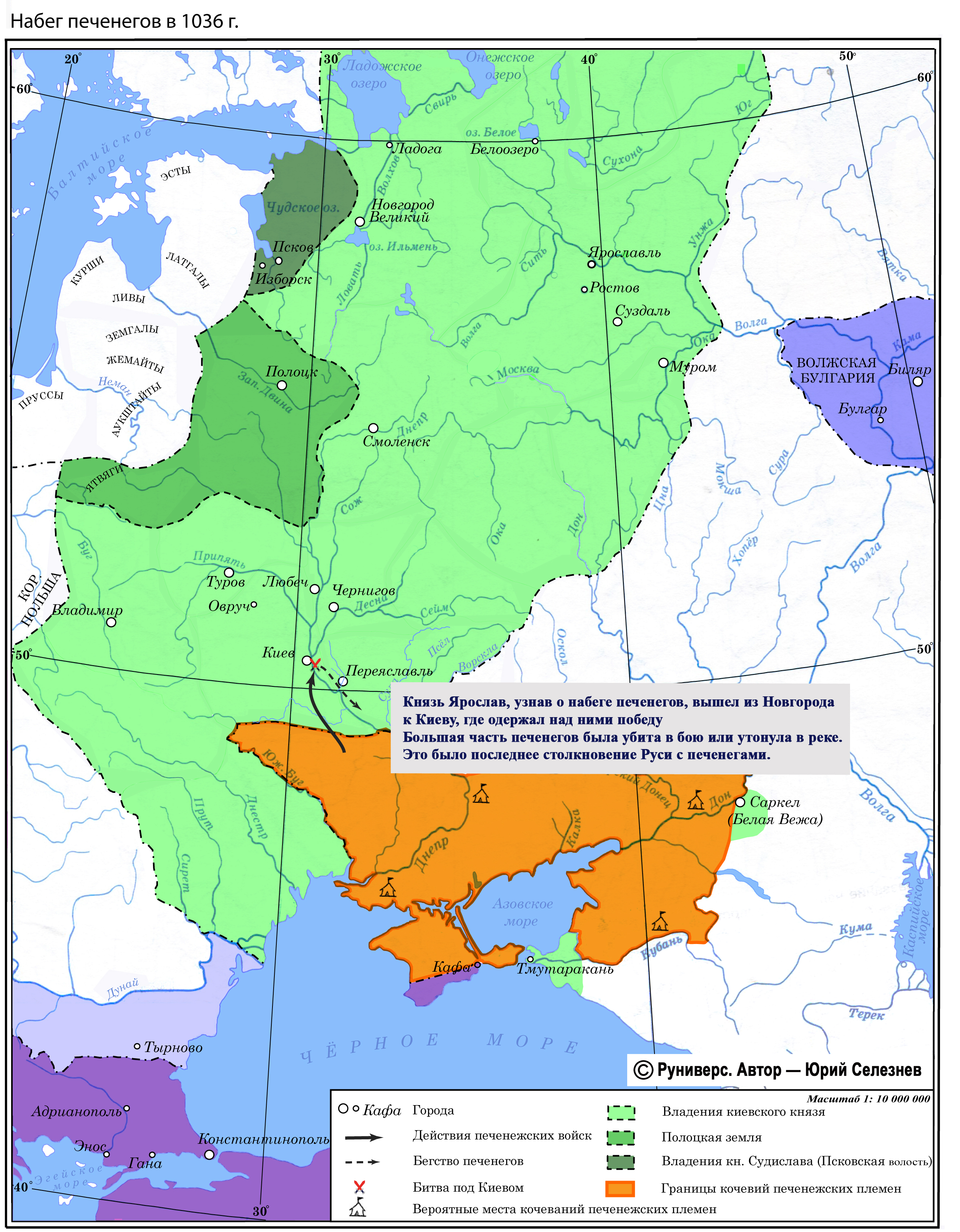 Князь Ярослав, узнав о набеге печенегов, вышел из Новгорода к Киеву, где одержал над ними победу.