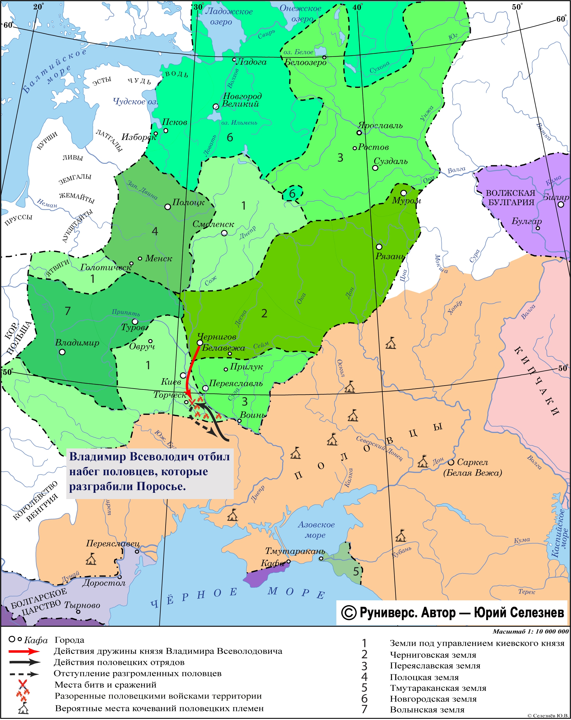 Владимир Всеволодич отбил набег половцев, которые разграбили Поросье.