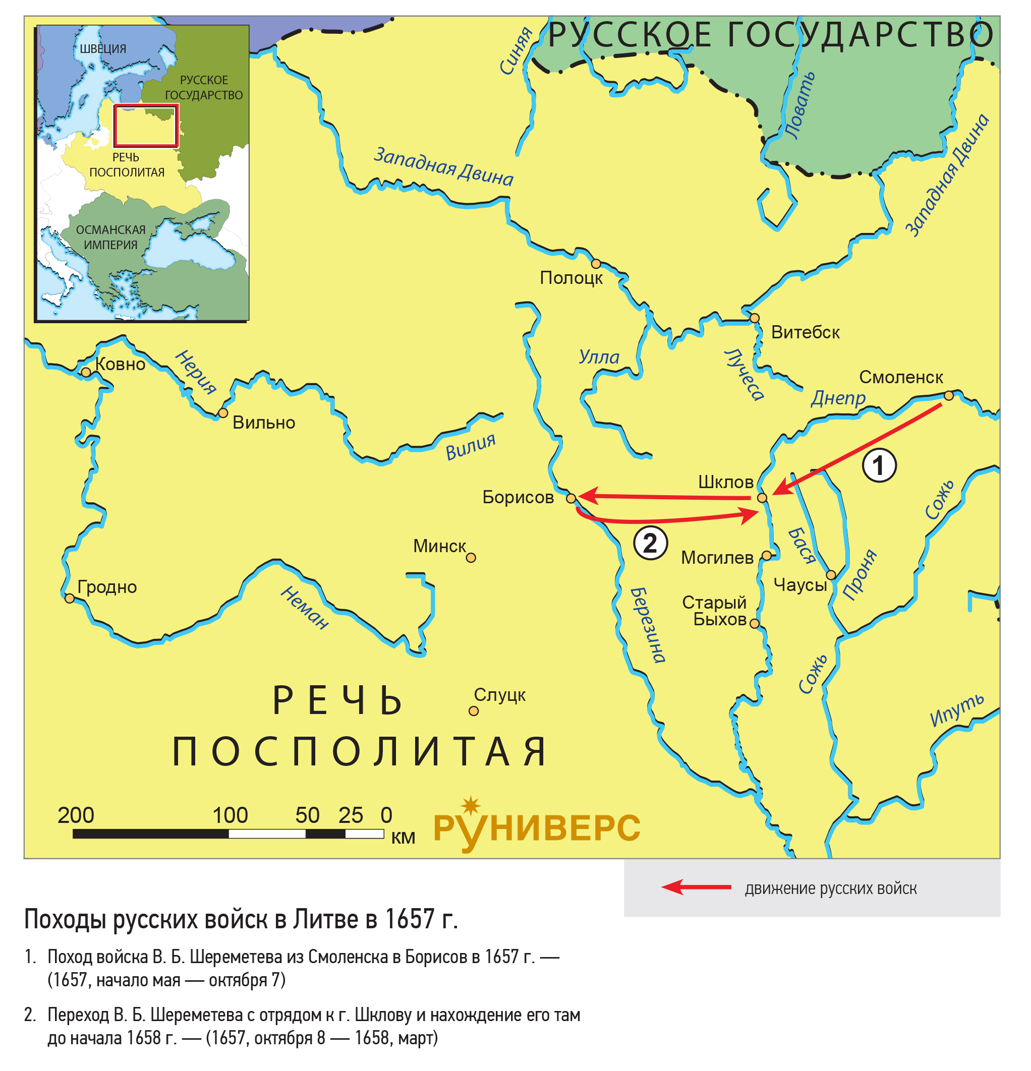 1. Поход войска В. Б. Шереметева из Смоленска в Борисов в 1657 г. — (1657, начало мая — октября 7)