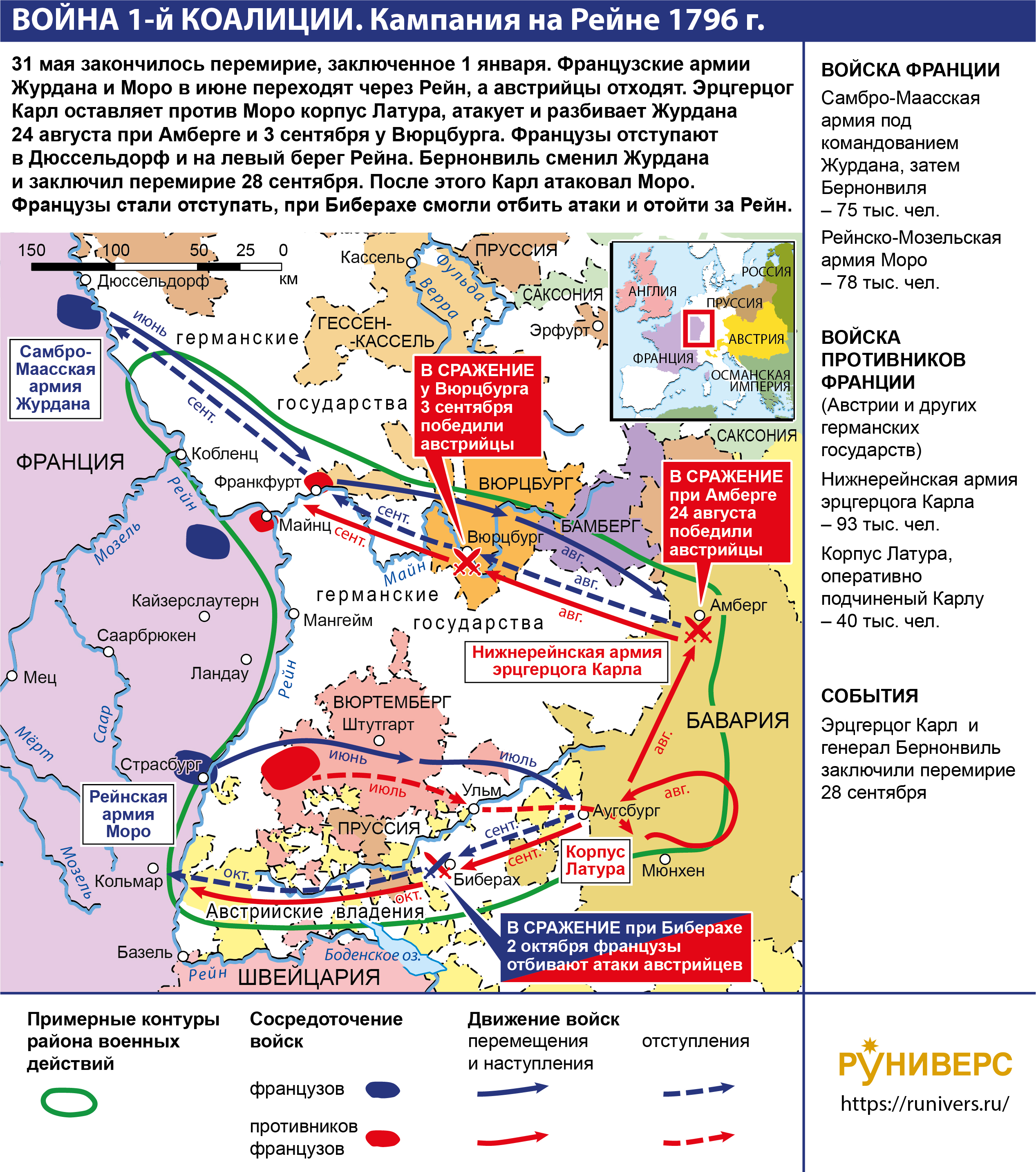 Война Первой антифранцузской коалиции. Кампания на Среднем Рейне в 1796 г.