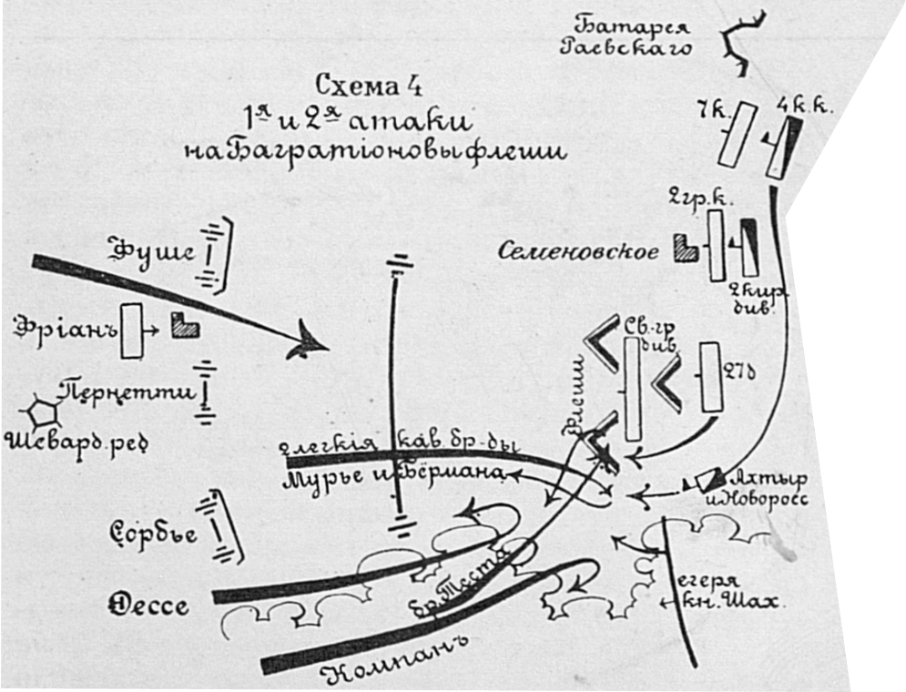 Бородинское сражение. 1-я и 2-я атаки на Багратионовы флеши