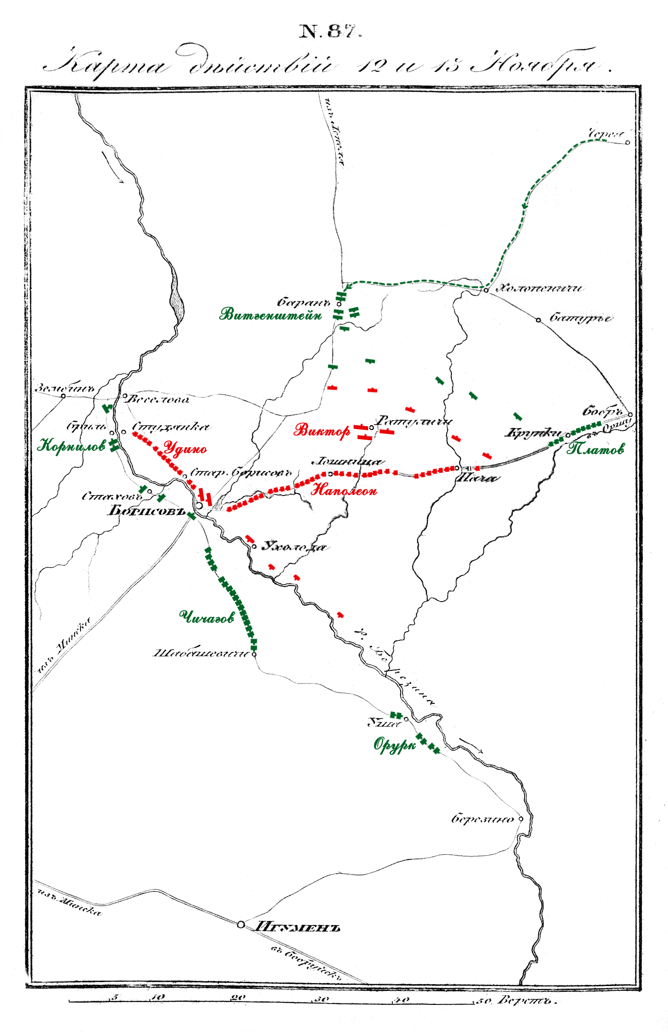 Путь отступления Наполеоновских войск и движение русских от Березины