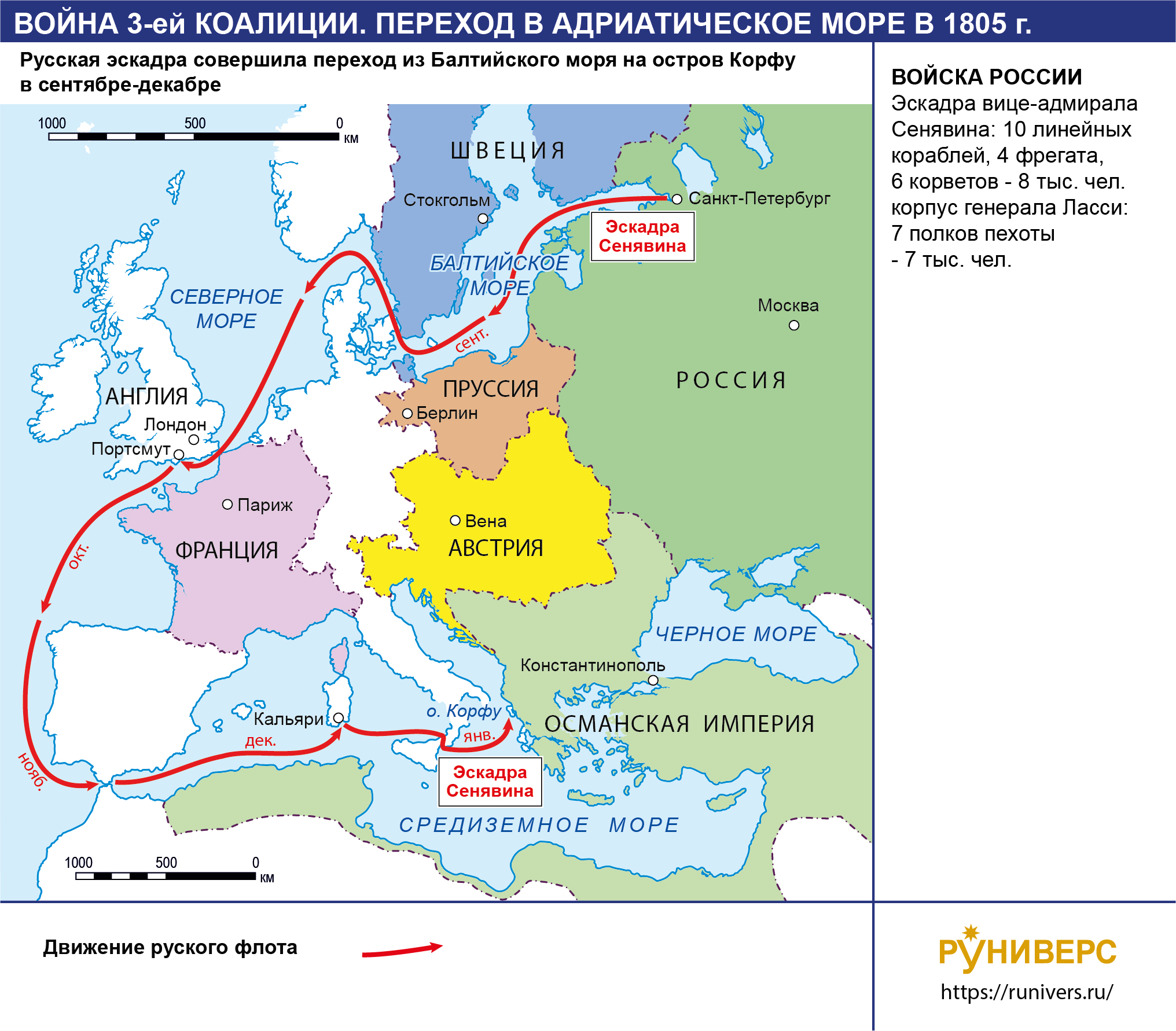 Война Третьей антифранцузской коалиции 1805 г. Поход эскадры Сенявина в Адриатическое море в 1805 г.