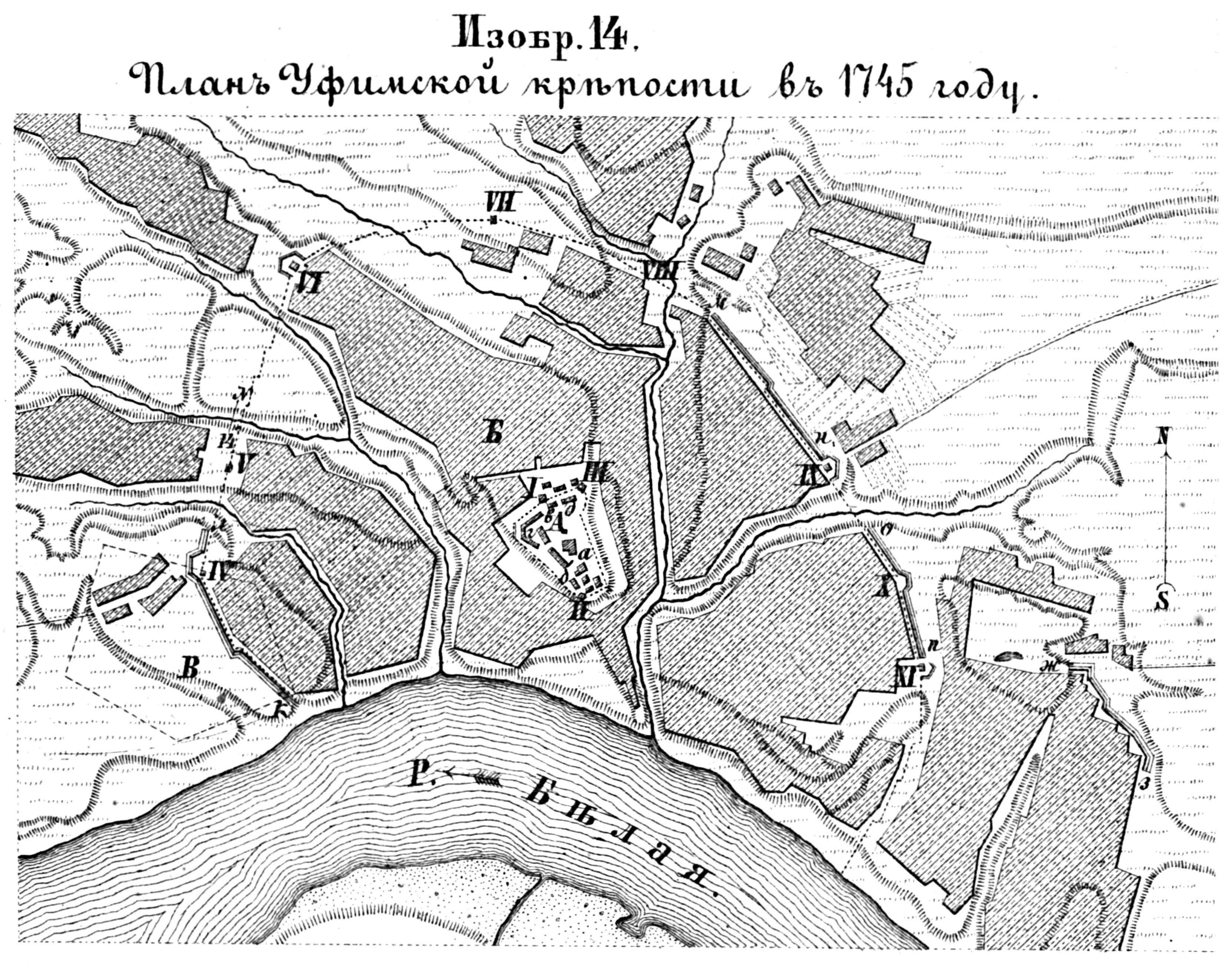 Казань, Черкаск, Уфа. План Уфимской крепости в 1745 году