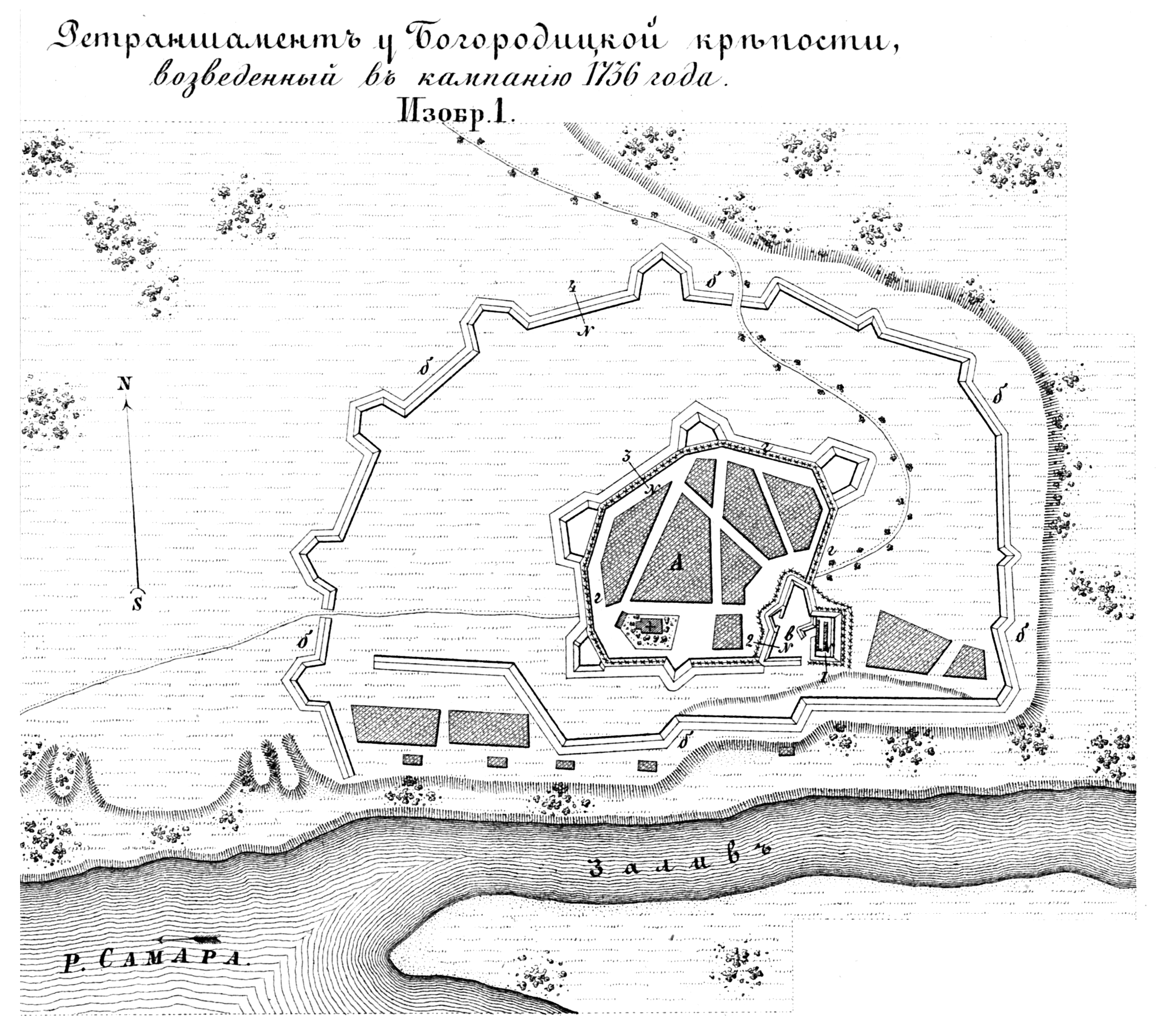 Полевые и временные укрепления. Изобр.1. Ретраншамент у Богородицкой крепости, возведенный в кампанию 1736 года