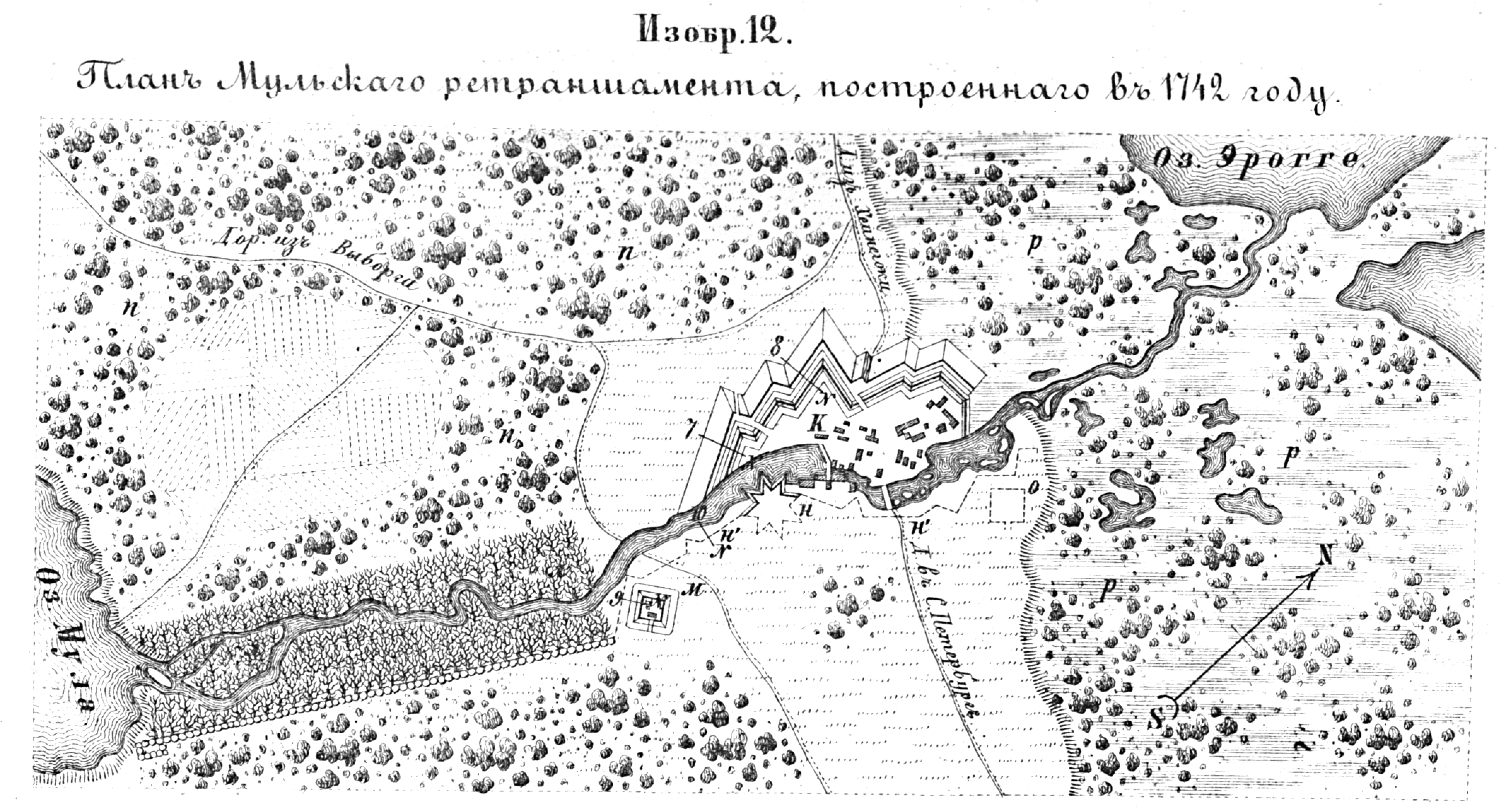 Полевые и временные укрепления. Изобр.12. План Мульского ретраншамента, построенного в 1742 году