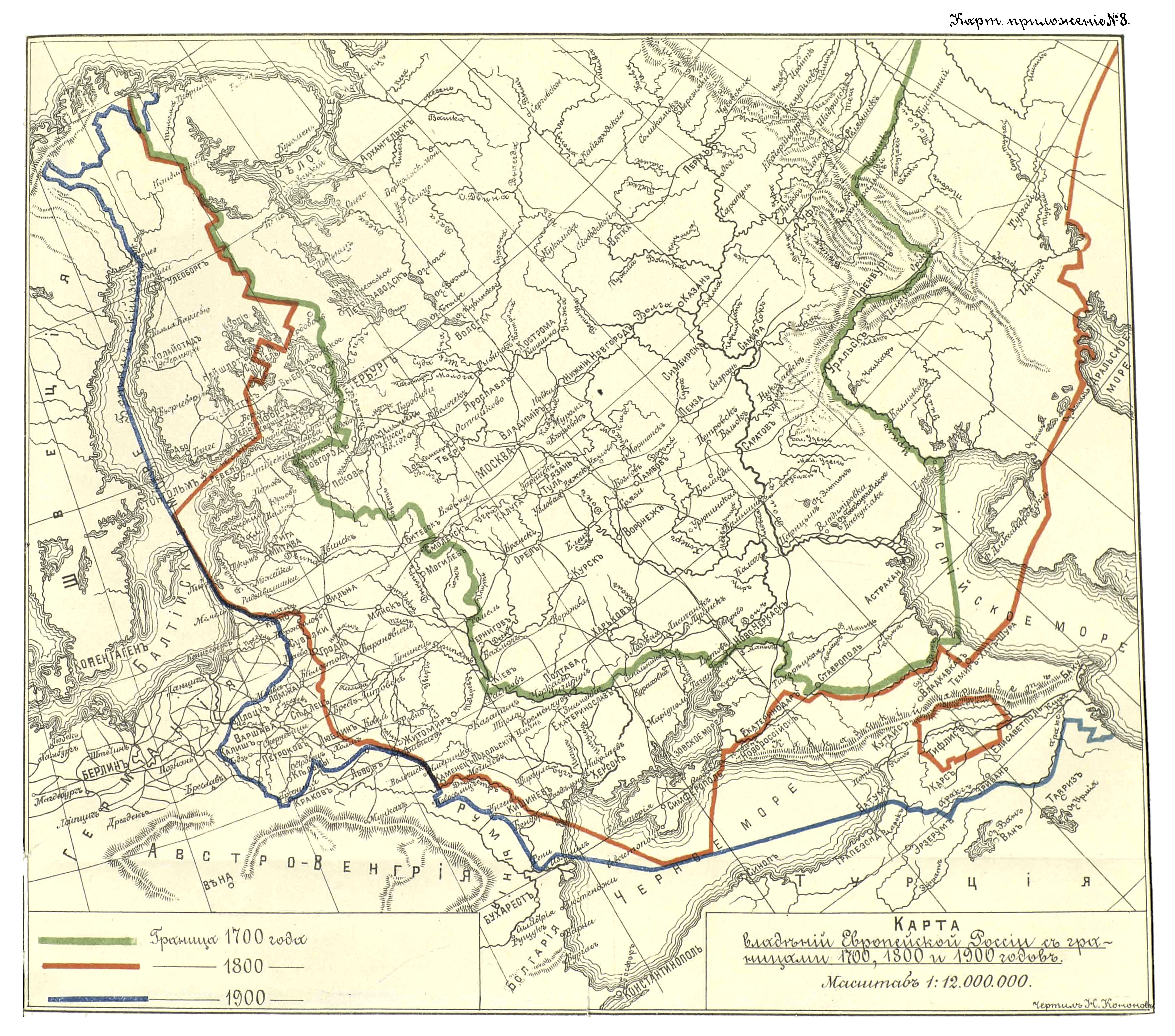 Владения Европейской России с границами 1700, 1800 и 1900 годов
