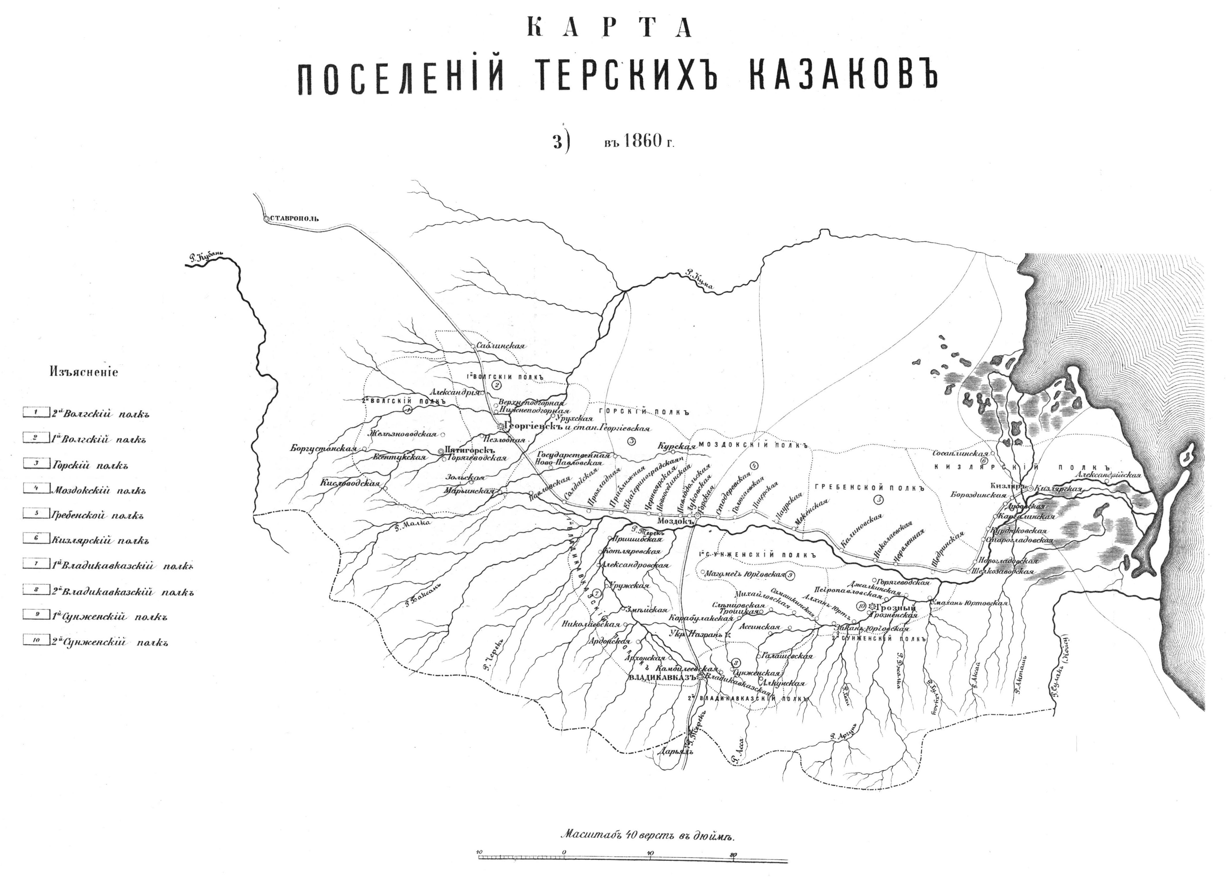 Поселения Терских казаков в 1860 году