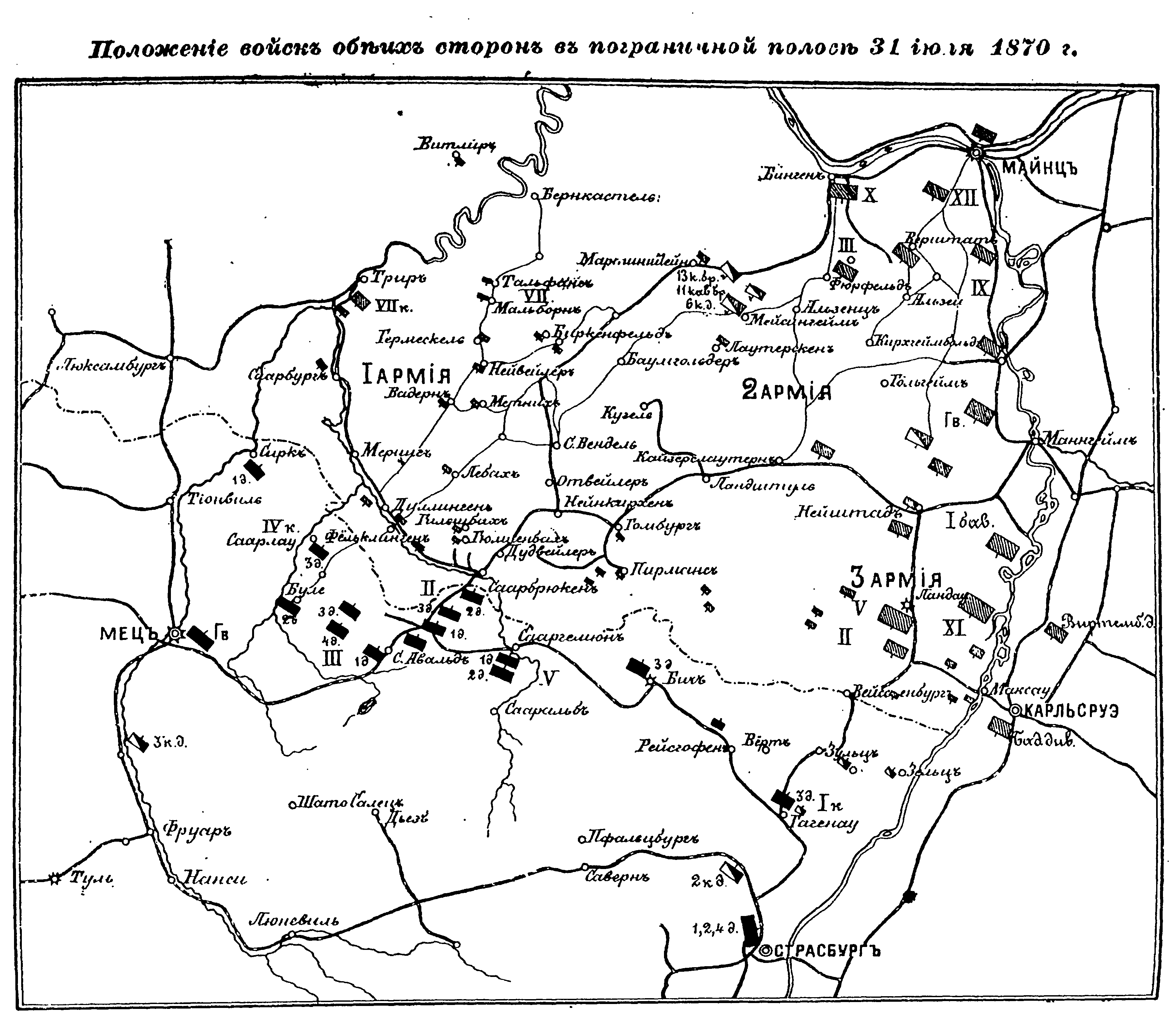 Положение войск обеих сторон в пограничной полосе 31 июля 1870 года