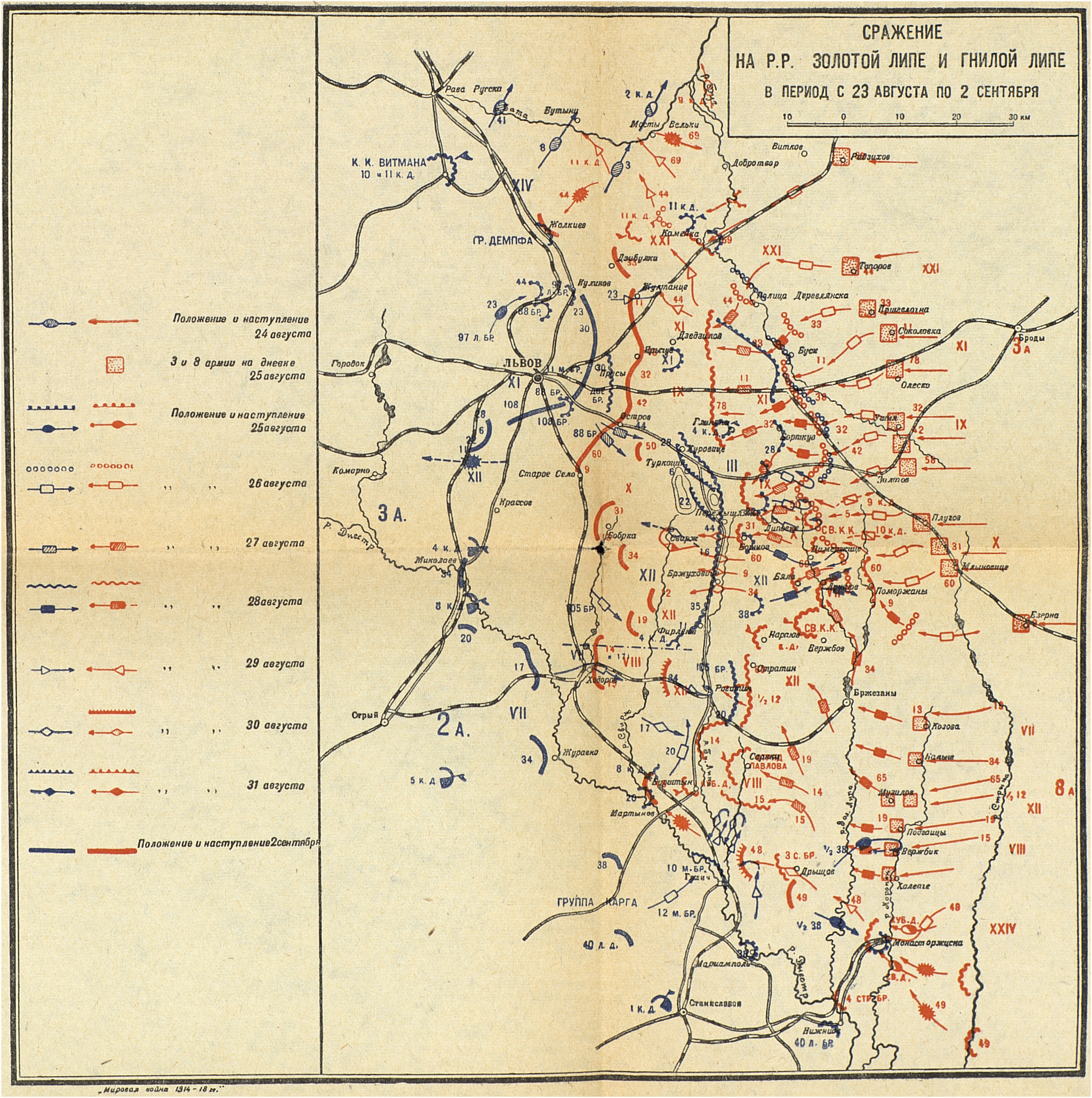 Кампания 1914 года. Русский теаатр. Галицийская битва. Сражение на реках Золотой Липе и Гнилой Липе (период с 23 августа по 2 сентября)
