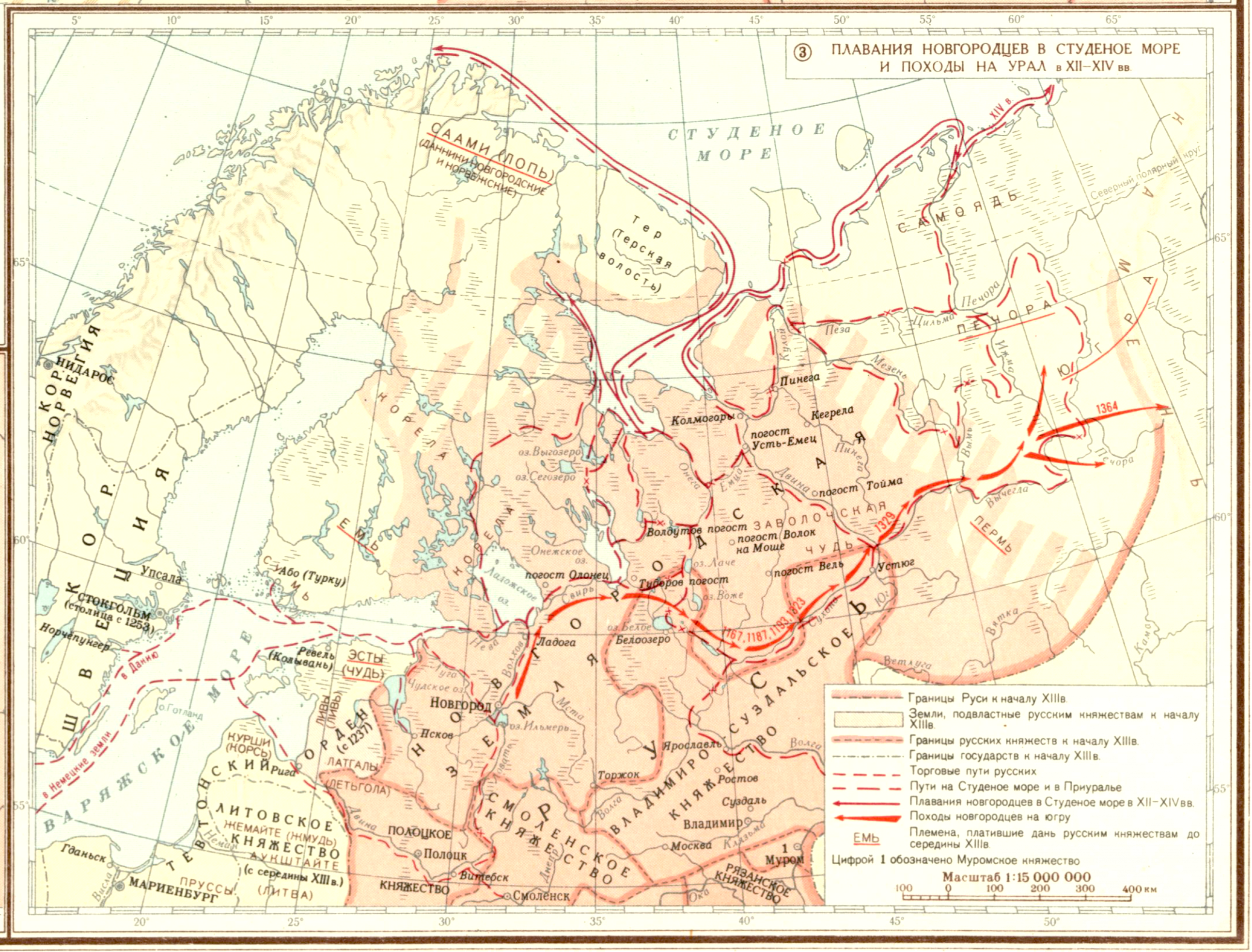 Борьба русского народа с немецкими и шведскими захватчиками в XIIв и первой половине XIIIв. Плавания новгородцев на севере в XII-XIVвв. (З) Плавания Новгородцев в студеное море и походы на Урал в XII-XIV вв.