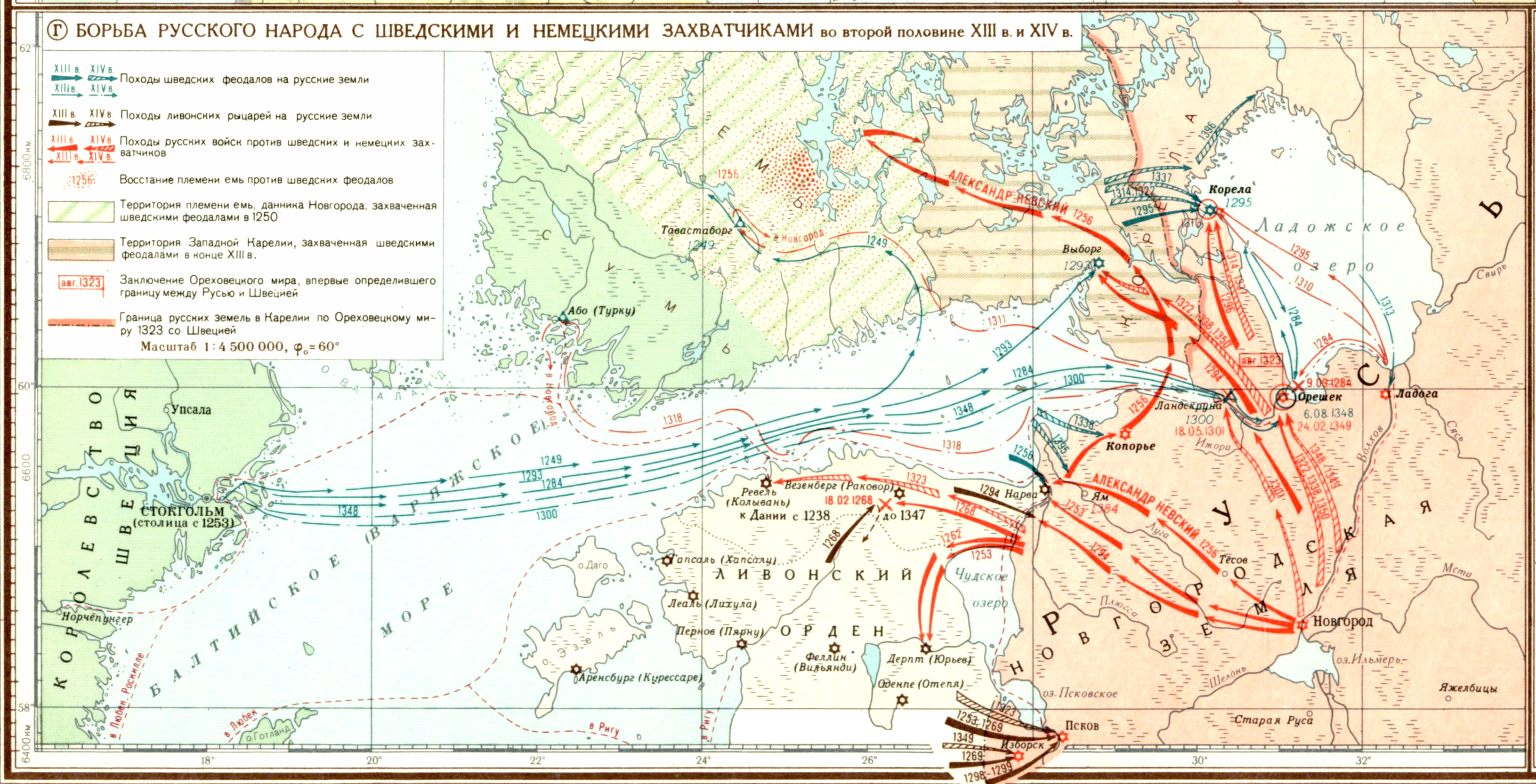 Борьба русского народа с иноземными захватчиками в период феодальной раздробленности XIII-XIV вв. (Г) Борьба русского народа с шведскими и немецкими захватчиками во второй половине XIIIв и XIVв.
