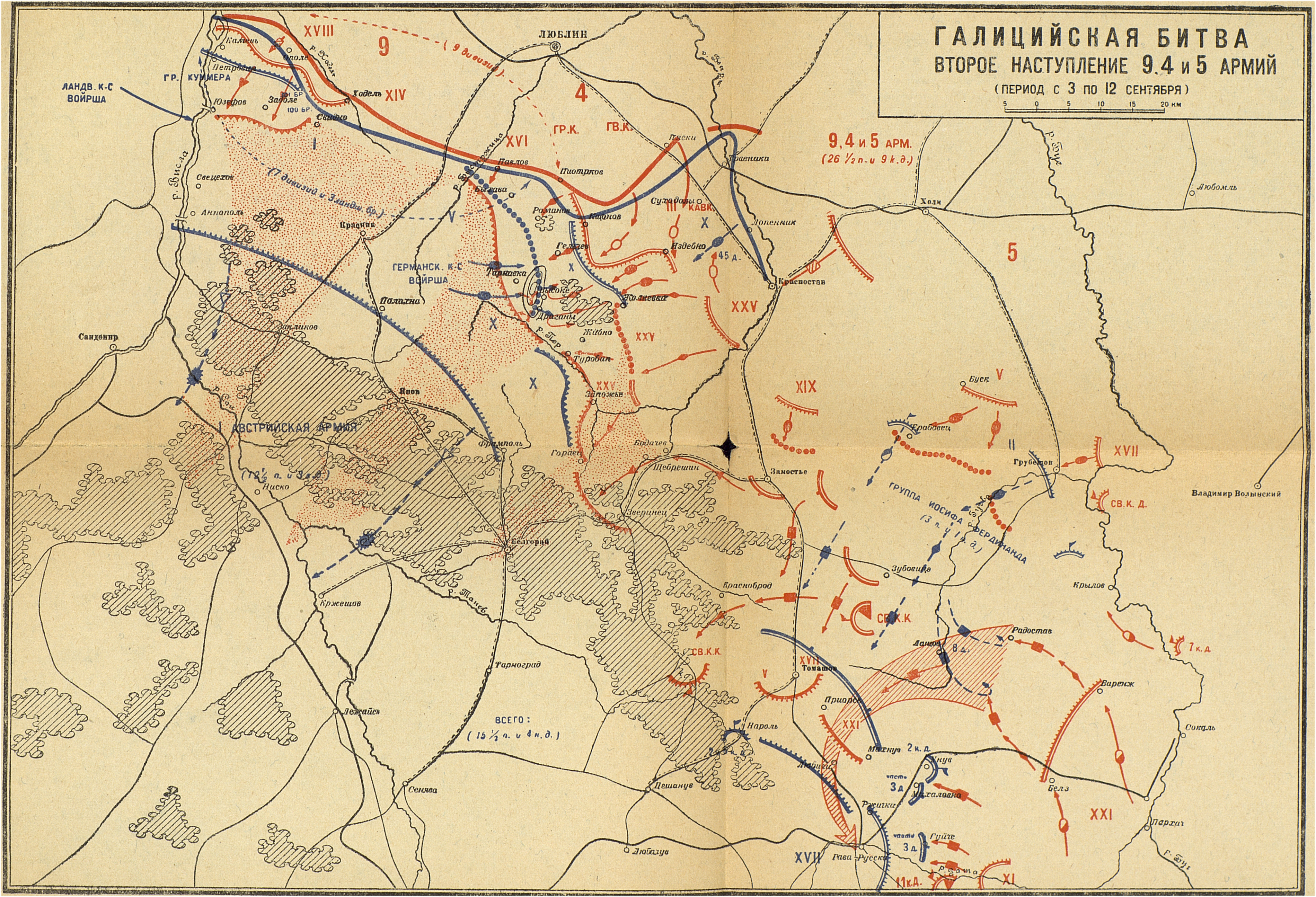 Кампания 1914 года. Русский театр. Галицийская битва. Второе наступление 9-й, 4-й и 5-й армий (перид с 3 по 12 сентября)