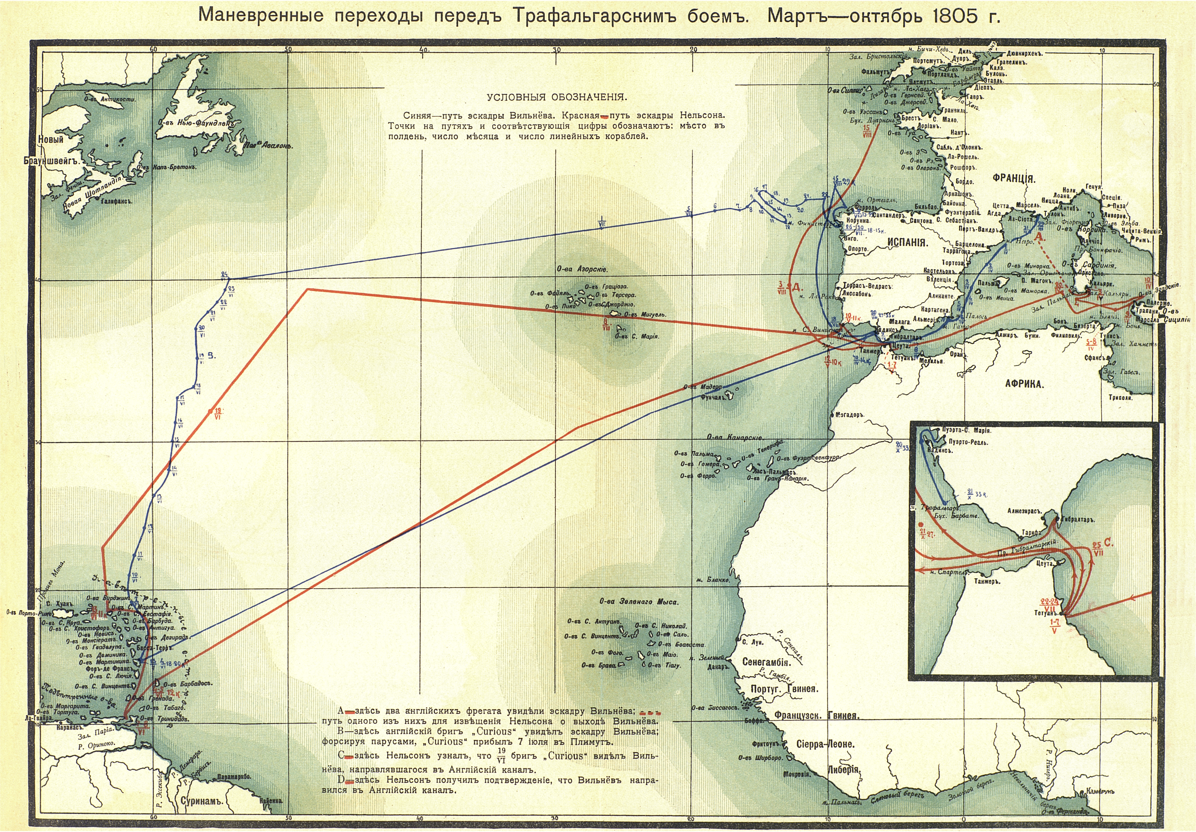 Маневренные переходы английских, французских и испанских флотов перед Трафальгарским боем. Март-октябрь 1805 года