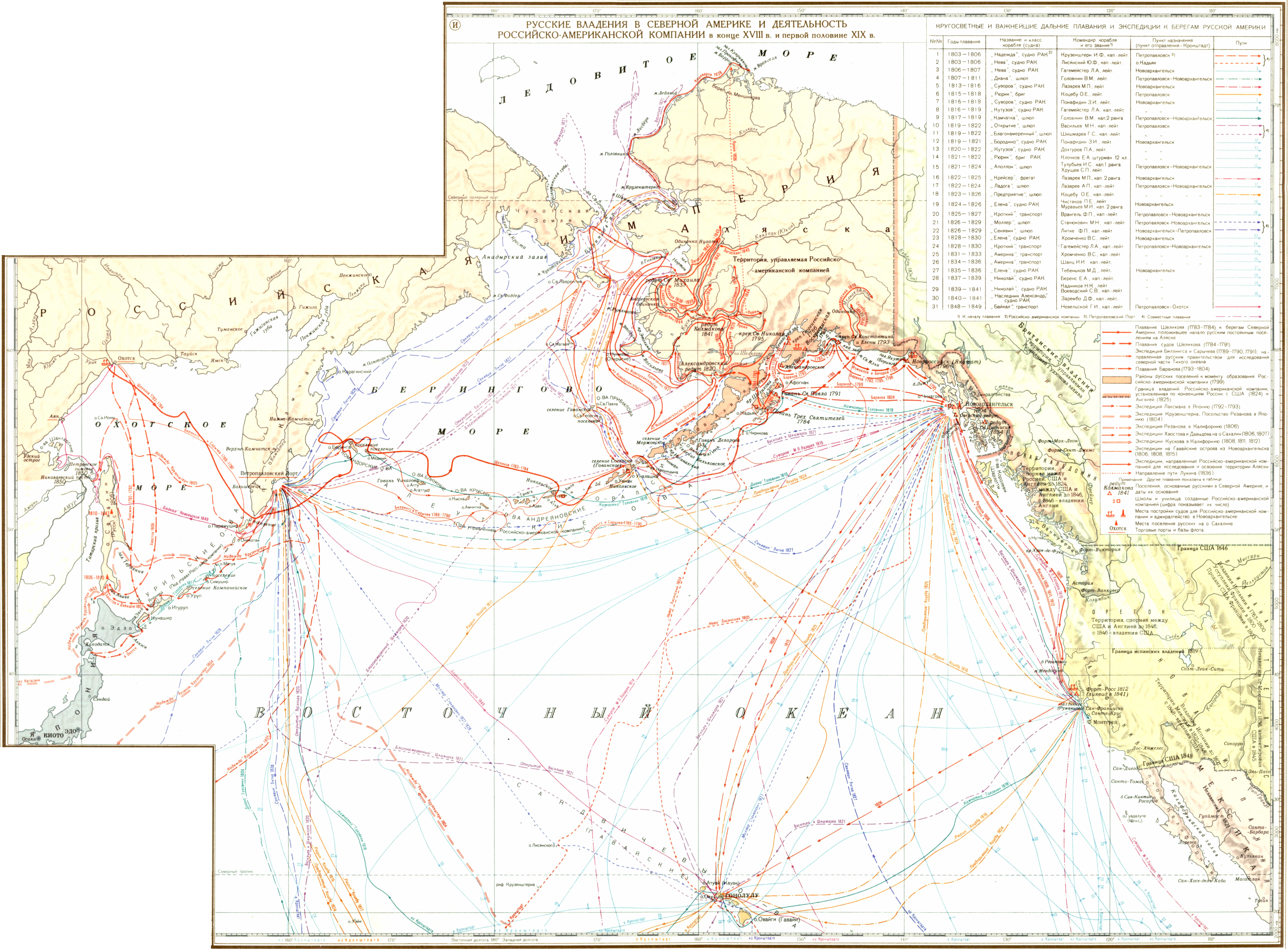 Освоение русскими Аляски и северной части Тихого океана во второй половине XVIII в и первой половине XIX в. (И) Русские владения в Северной Америке и деятельность Российско-Американской Компании в конце XVIII в. и первой половине XIX в.