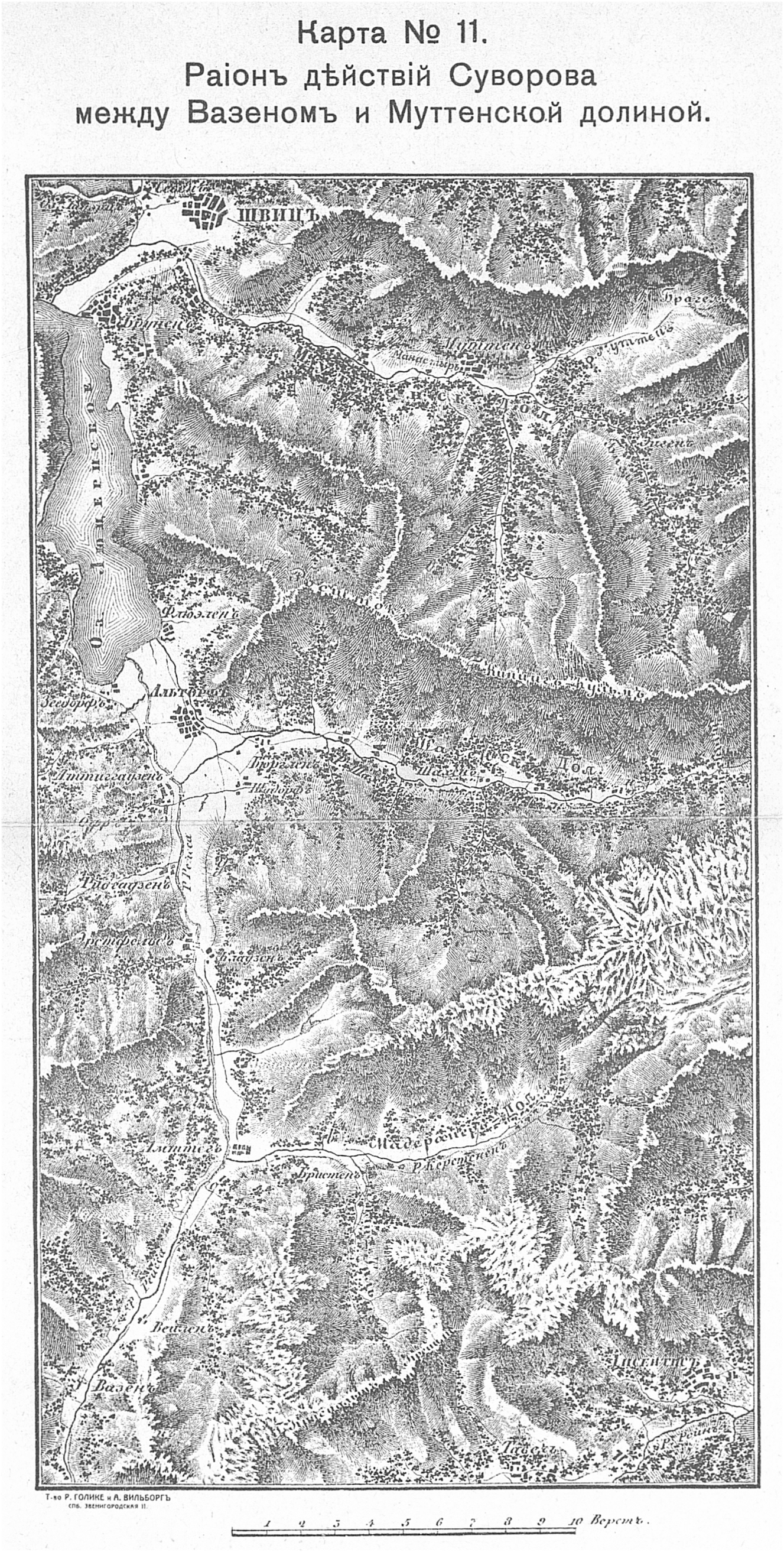 Район действий Суворова между Вазеном и Муттенской долиной