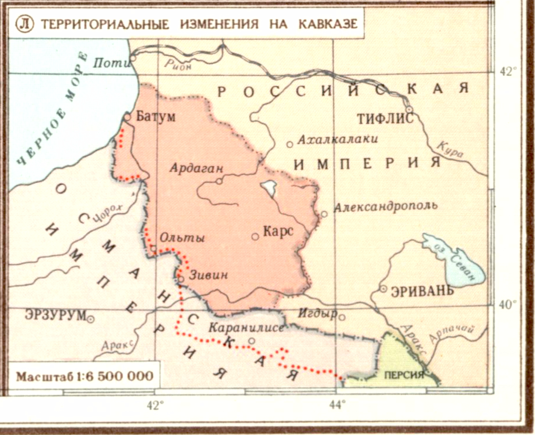 Русско-турецкая война 1877-1878 гг. (Л) Территориальные изменения на Кавказе.