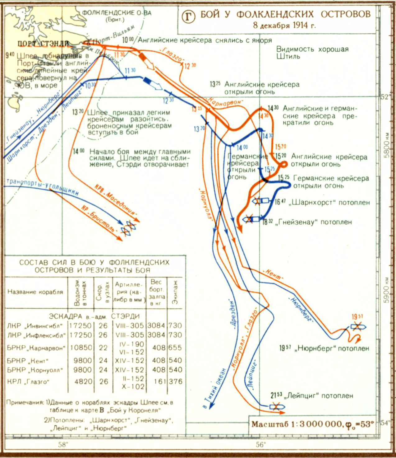 Первая мировая империалистическая война 1914-1918 гг. (Г) Бой у Фолклендских островов 8 декабря 1914 г.
