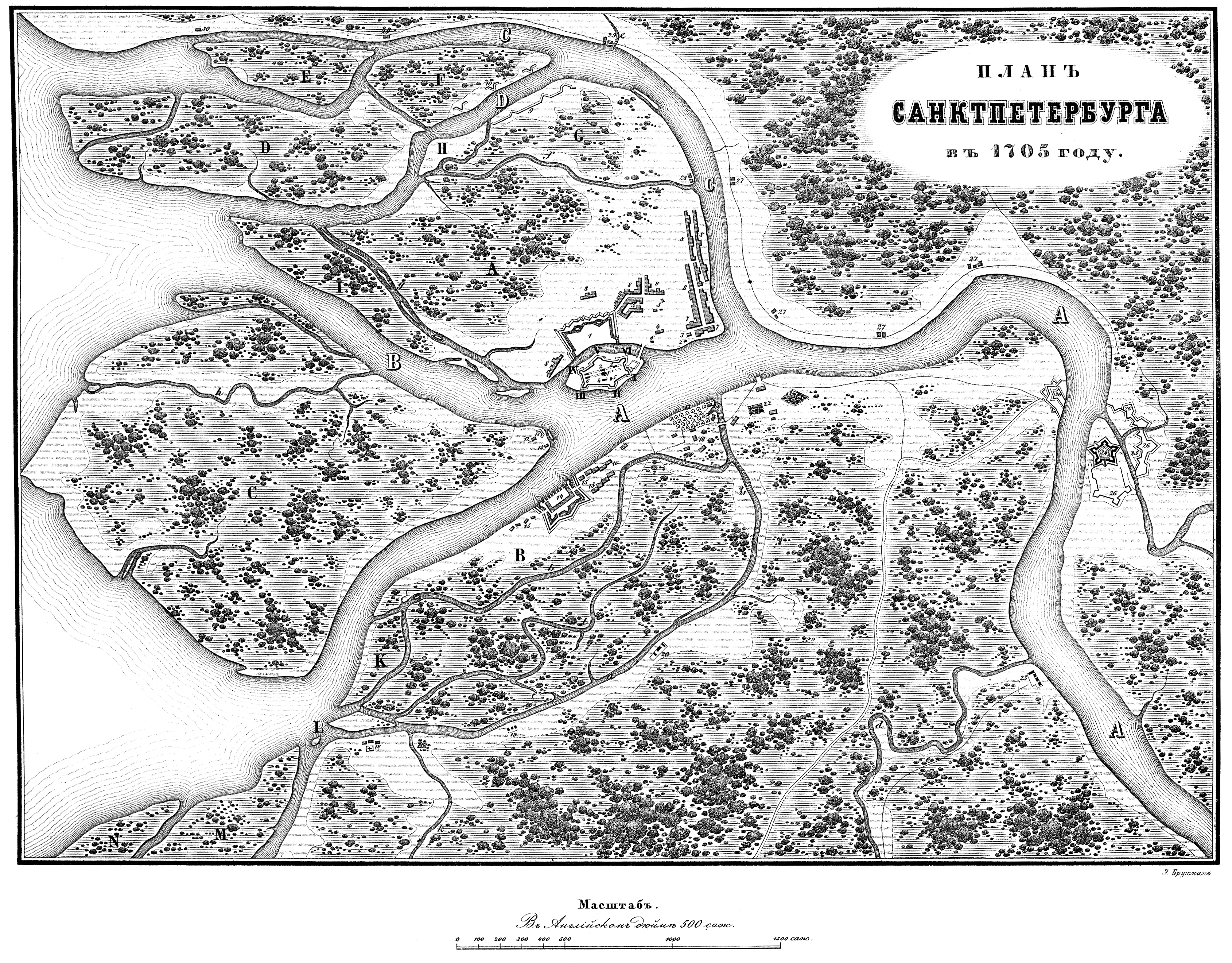 План Санкт-Петербурга в 1705 году.