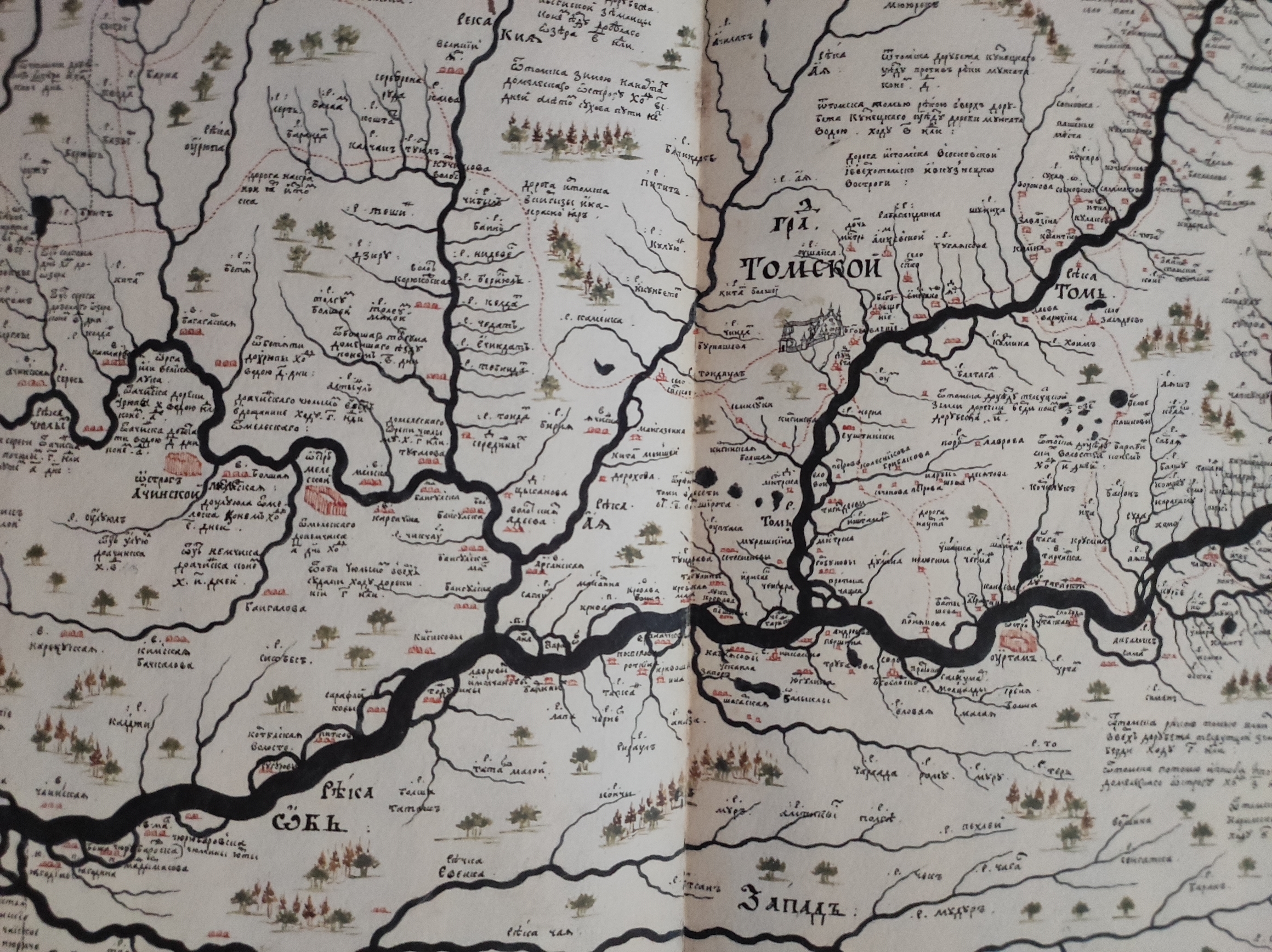 Чертеж земли Томского города из Служебной чертежной книги С.У. Ремезова с изображением крепостей и острогов. Конец XVII в.