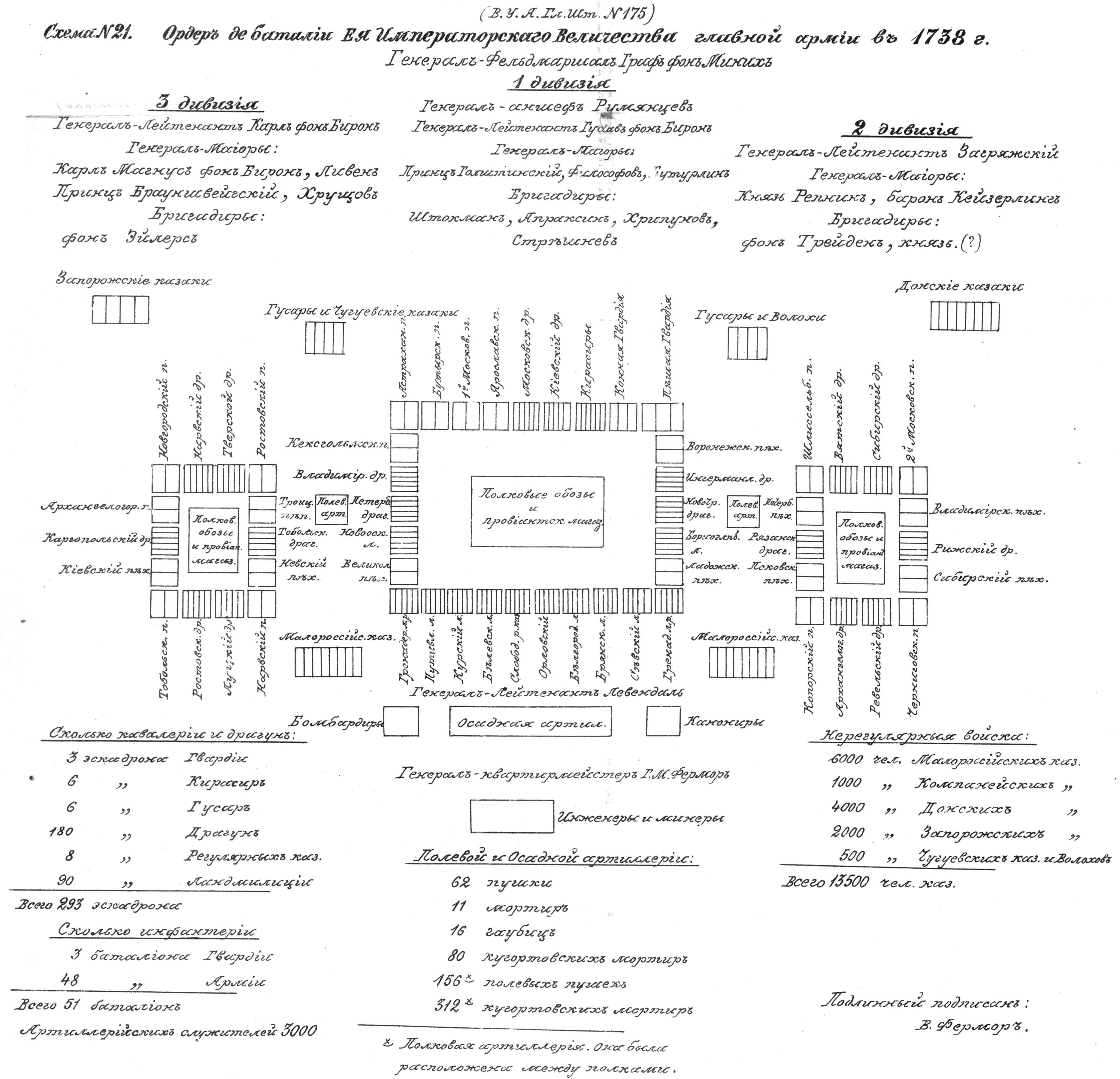 Ордер де батайль Её Императорского Величества главной армии в 1738 году