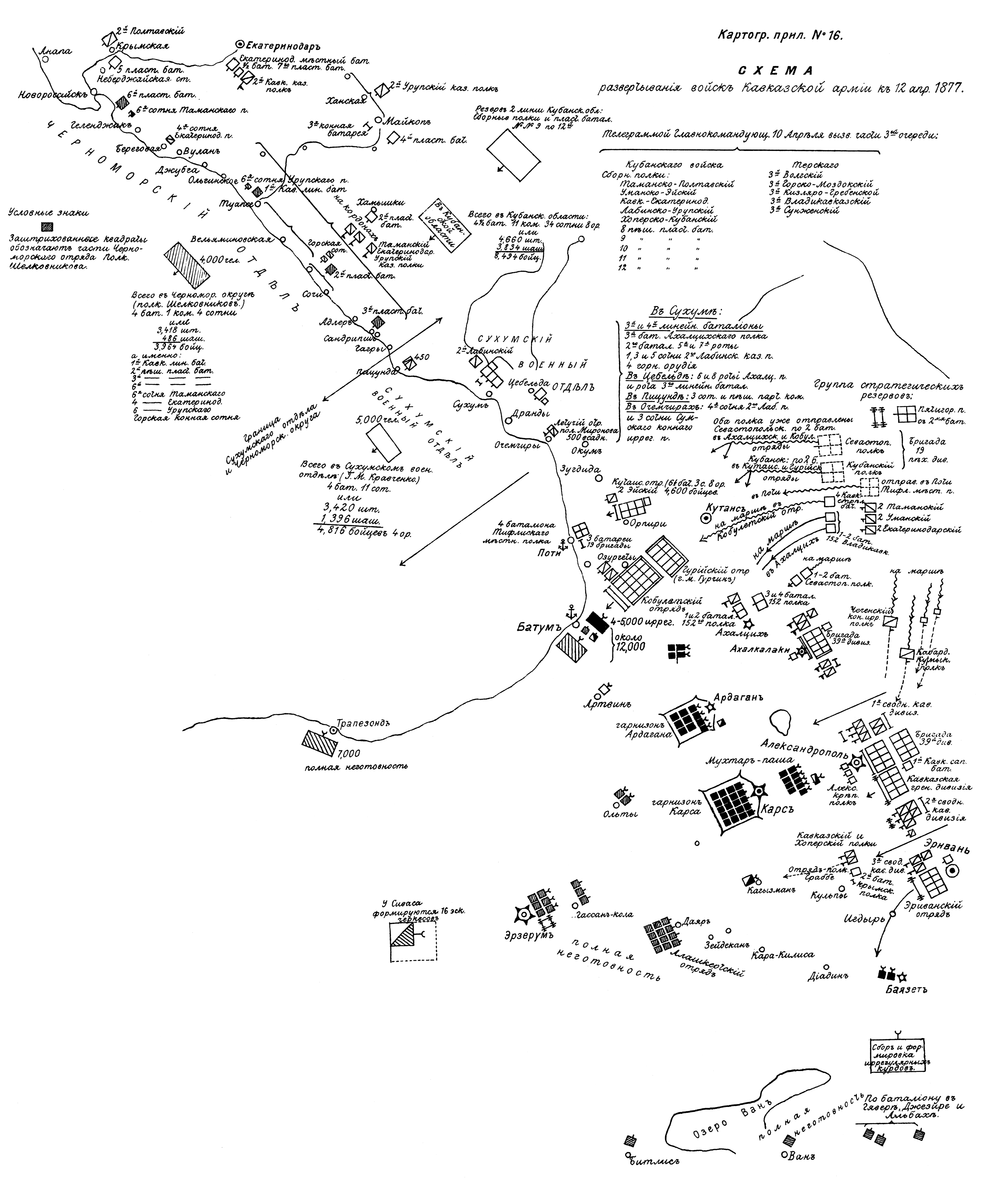 Развертывание войск Кавказской армии к 12 апреля 1877 года